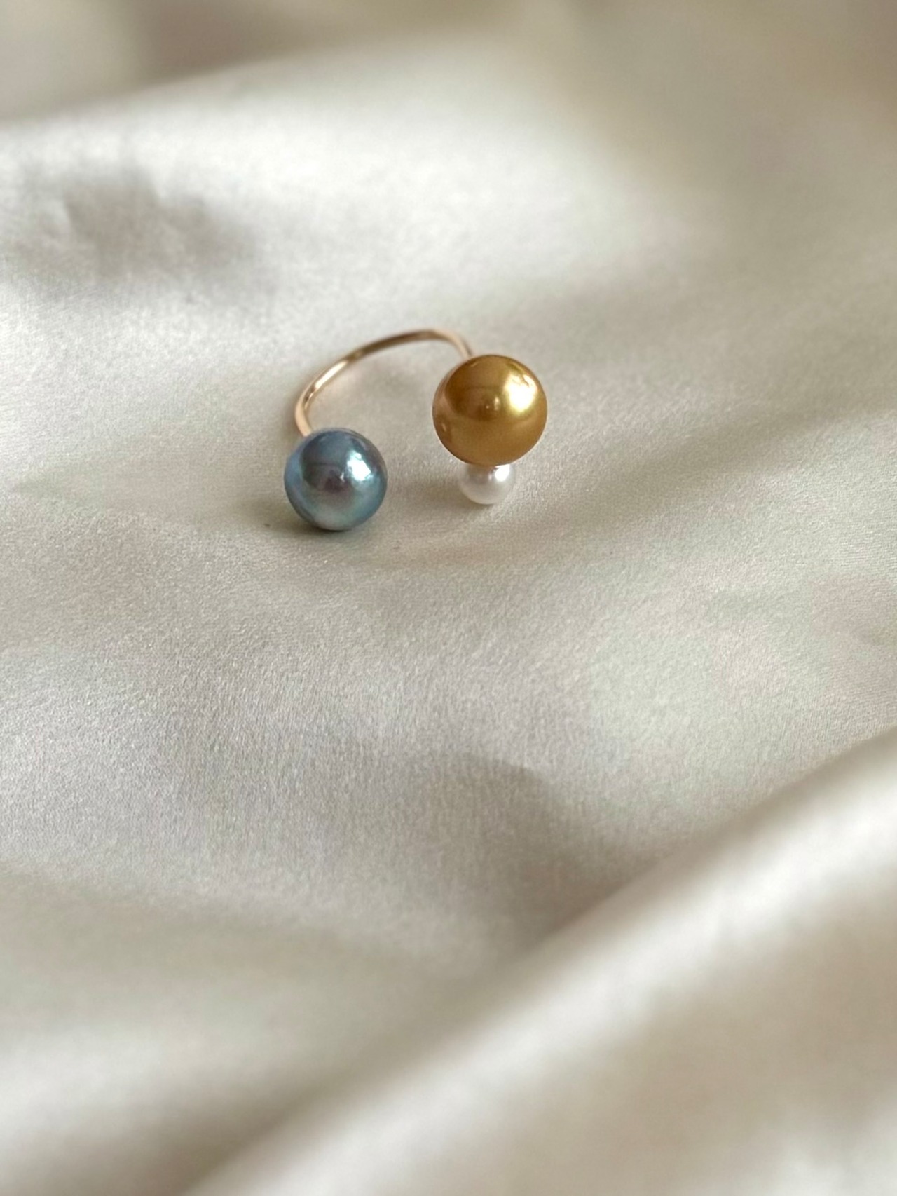 真珠の種類や形、カラーにとらわれず自由な発想で組み合わせるcombination ringシリーズ。