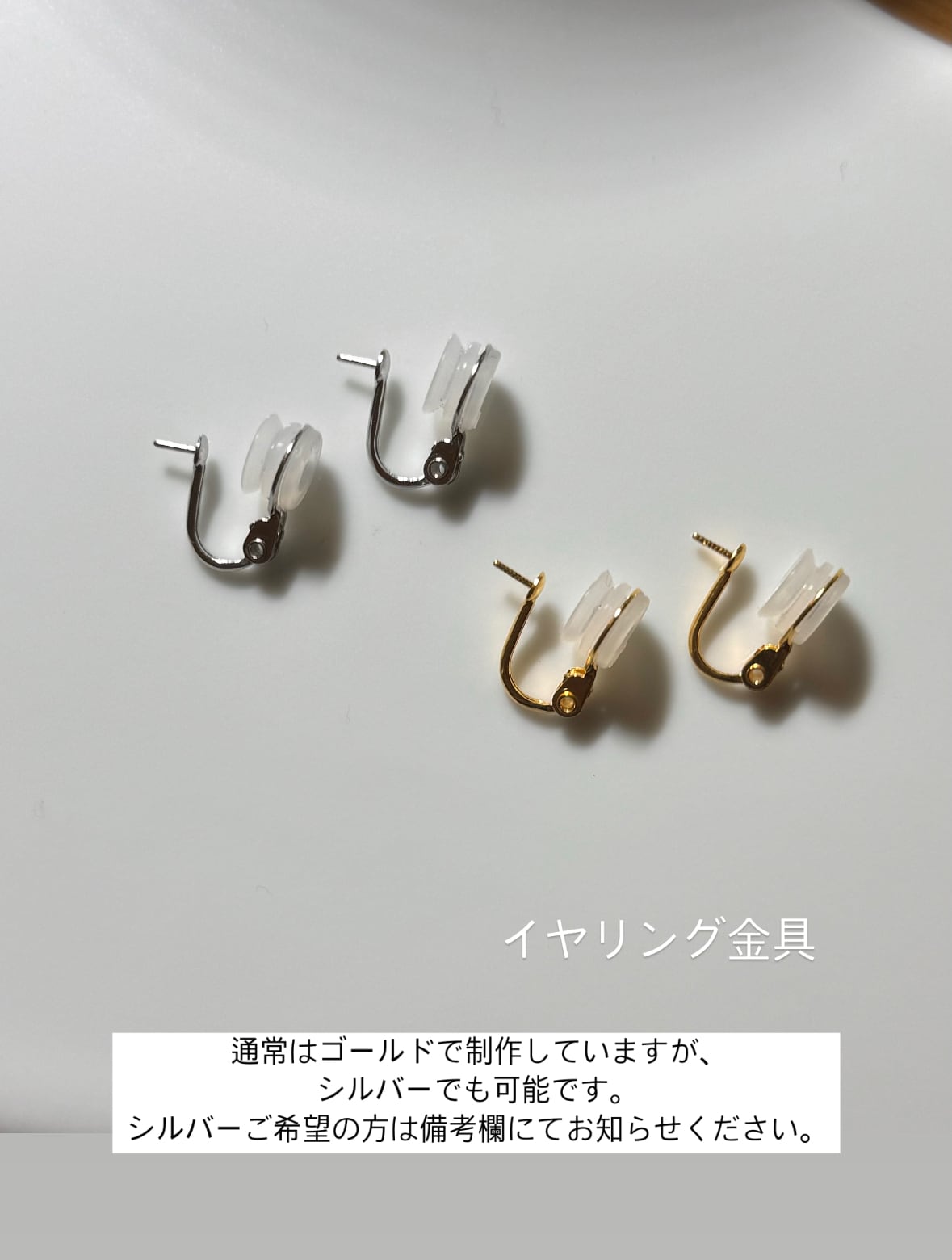 ※イヤリングご希望の方は備考欄にてお知らせくださいませ。(圧着を微調整でき長時間つけても痛くなりにくいクリップ式を採用)