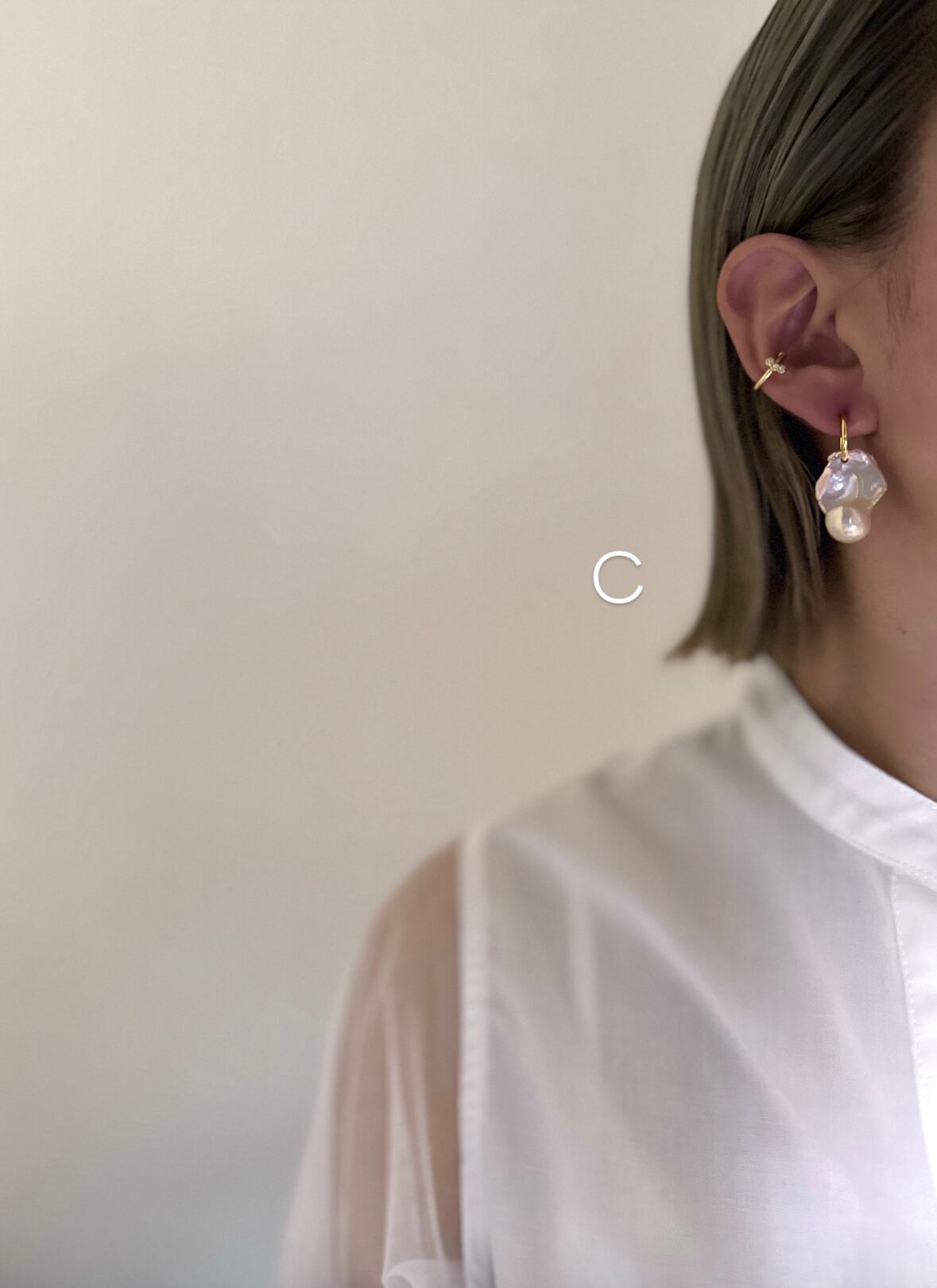 バロックパールにフープを通したモダンなスタイルに。金具は取り外せるのでフープだけでもご使用可能です。