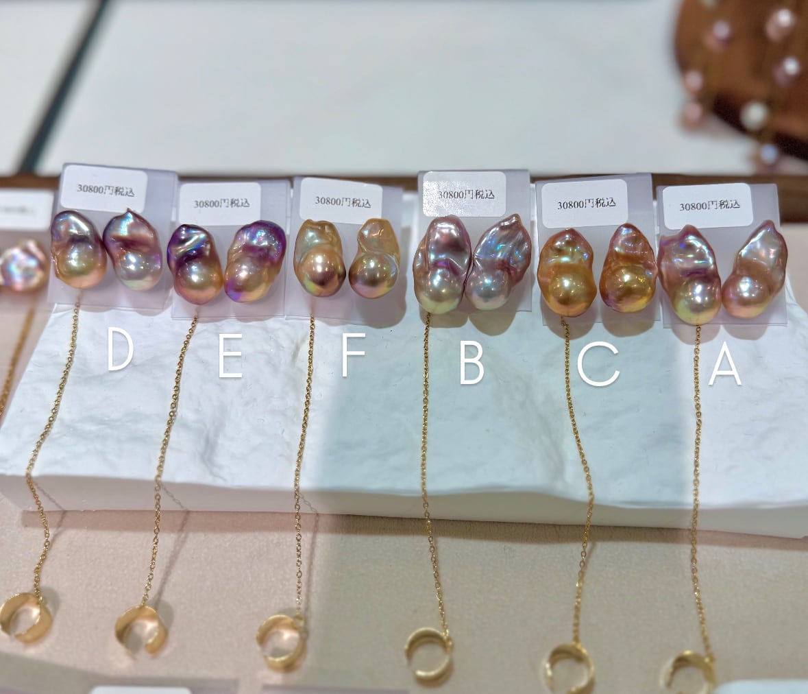 バロックパールは色照り艶形が全て揃った個体は1000粒のうち1〜2粒あるかどうか。カラーになるとさらに難易度が上がります。