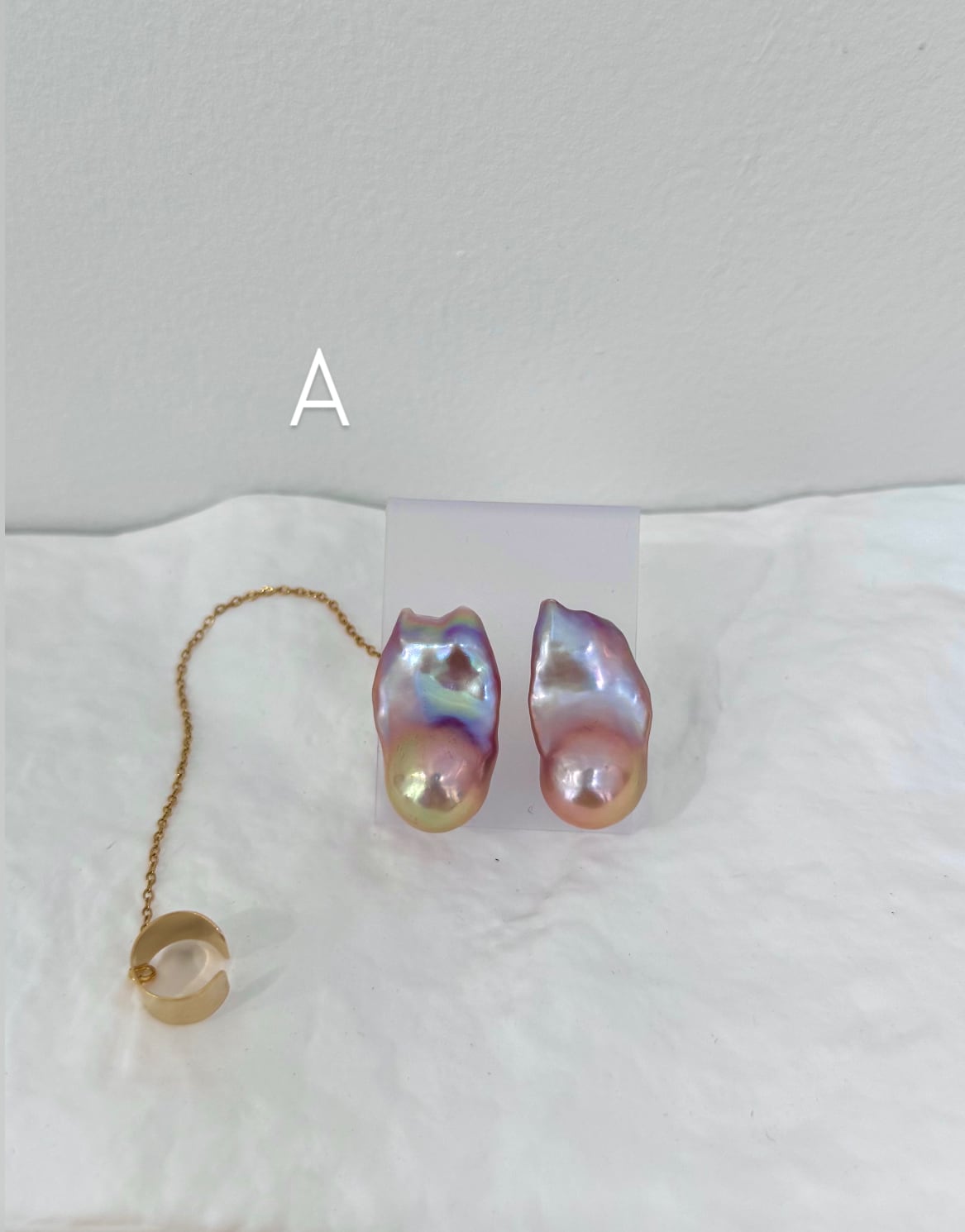一点ずつ仕入れたのでペアになるのはさらに奇跡!片耳はイヤーカフ付きチェーンでアシンメトリーデザインに。シンプルながらに個性が引き立つスペシャルなカラーバロックをぜひ。