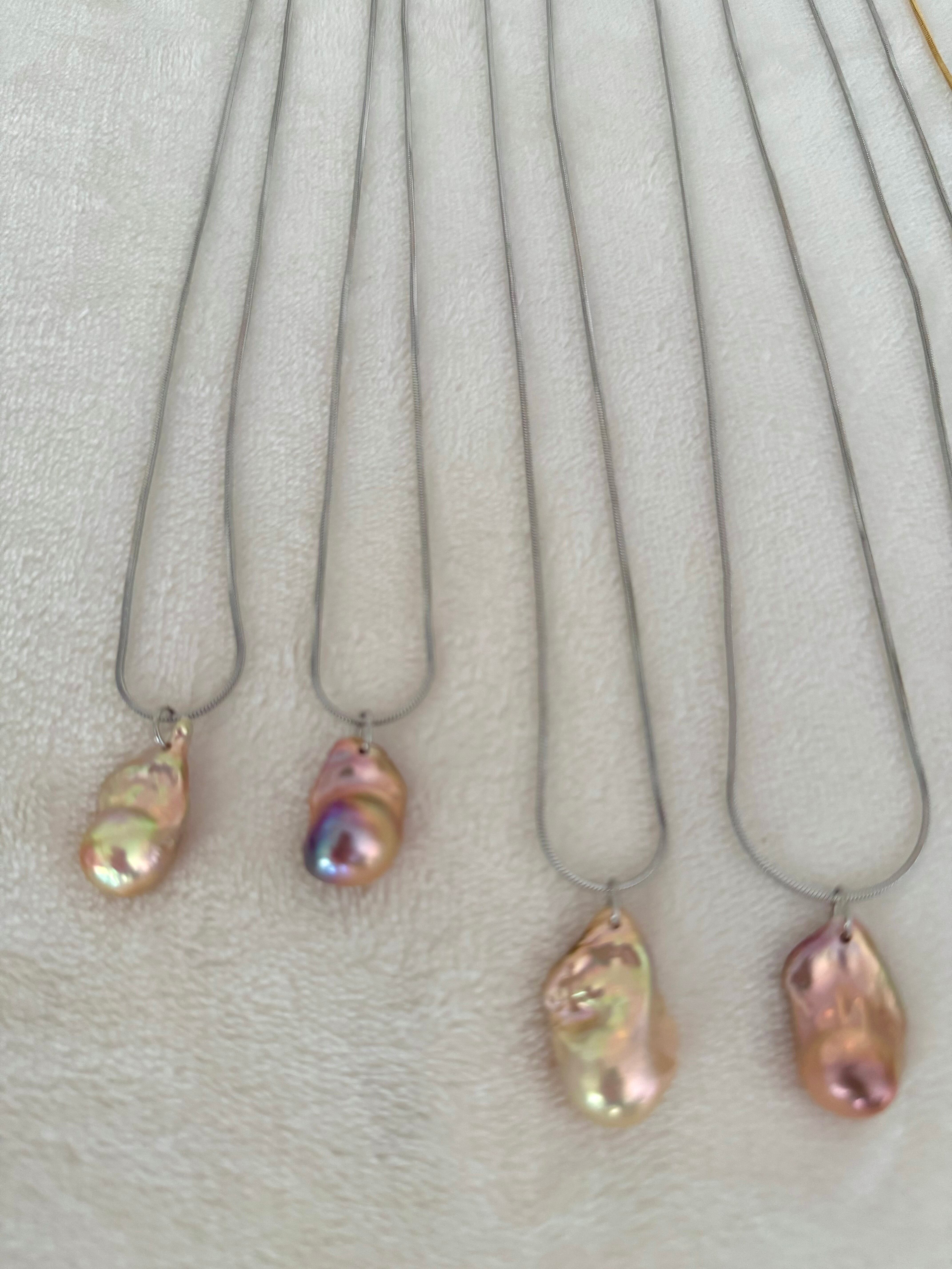 美しい干渉色を纏ったバロックパールのシンプルなネックレス。