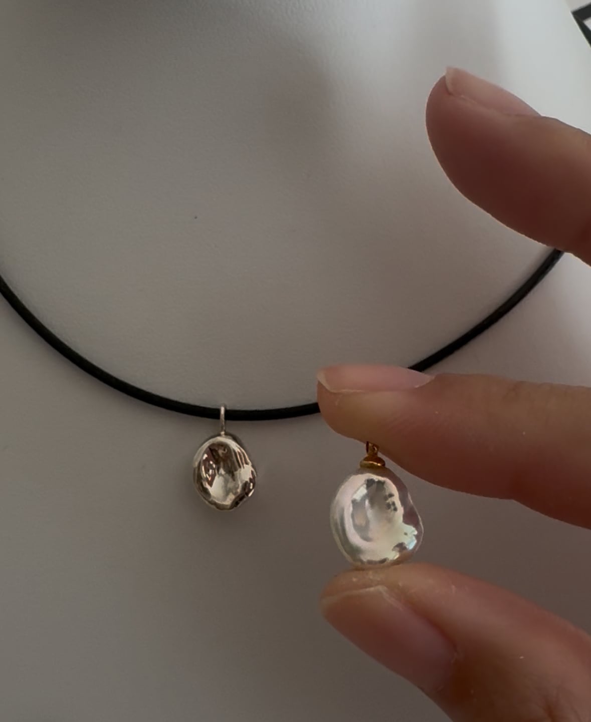 実際にあるパールを型取り、職人の手仕事を何工程も加えた手の込んだルックスリアルなメタルパールチャーム。
