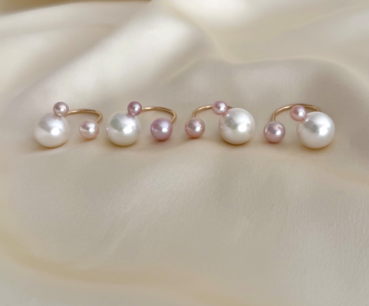 真珠の種類や形、カラーにとらわれず自由な発想で組み合わせるcombination ringシリーズ。
