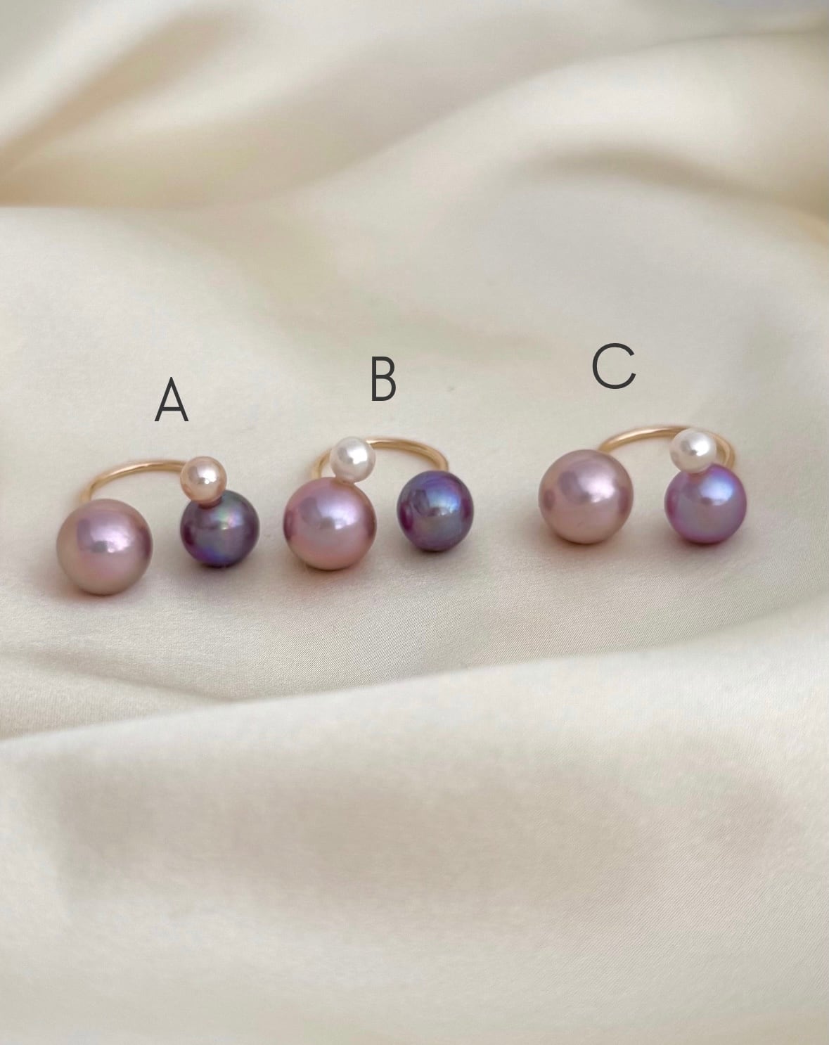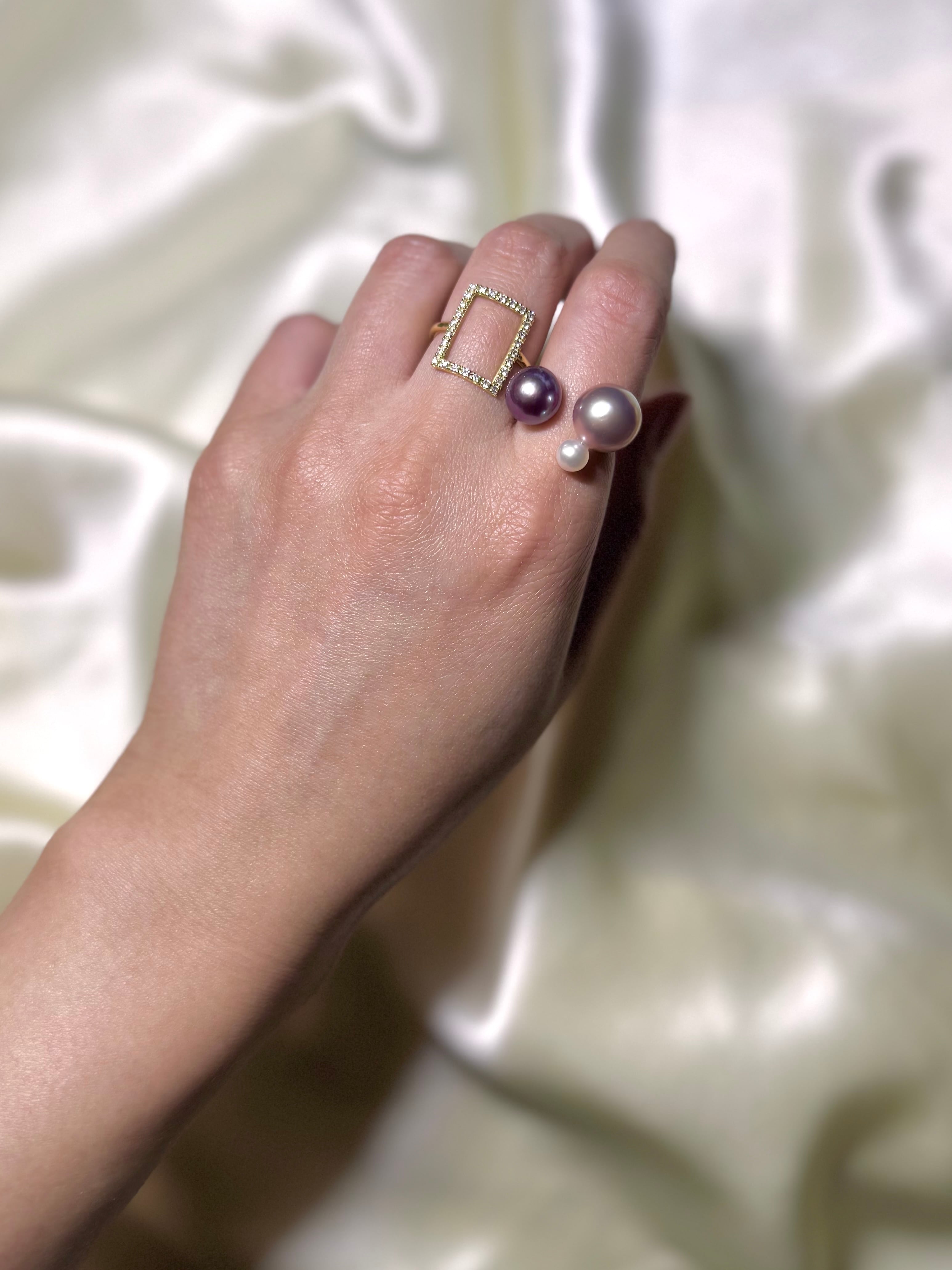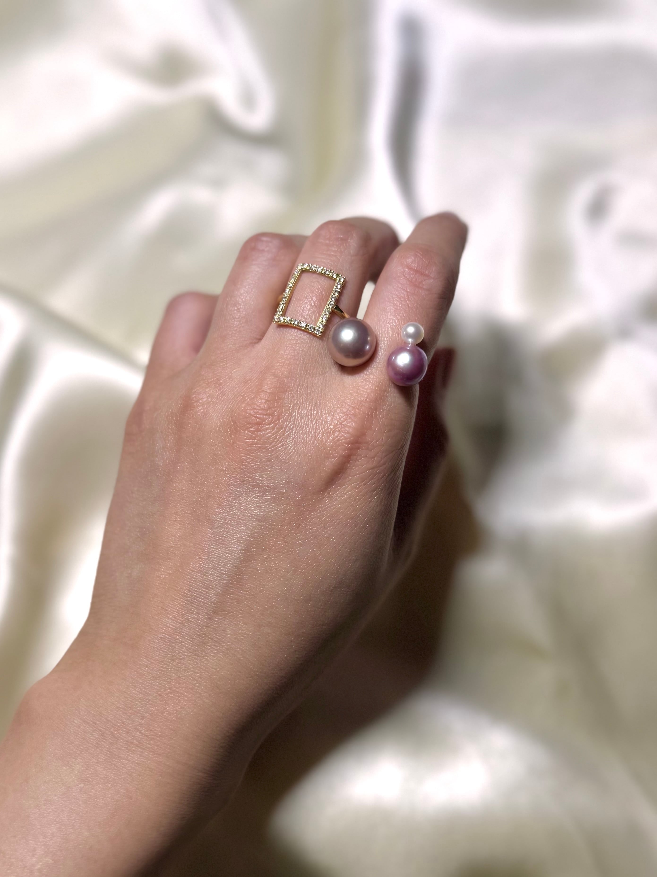 真珠の種類や形、カラーにとらわれず自由な発想で組み合わせるcombination ringシリーズ。