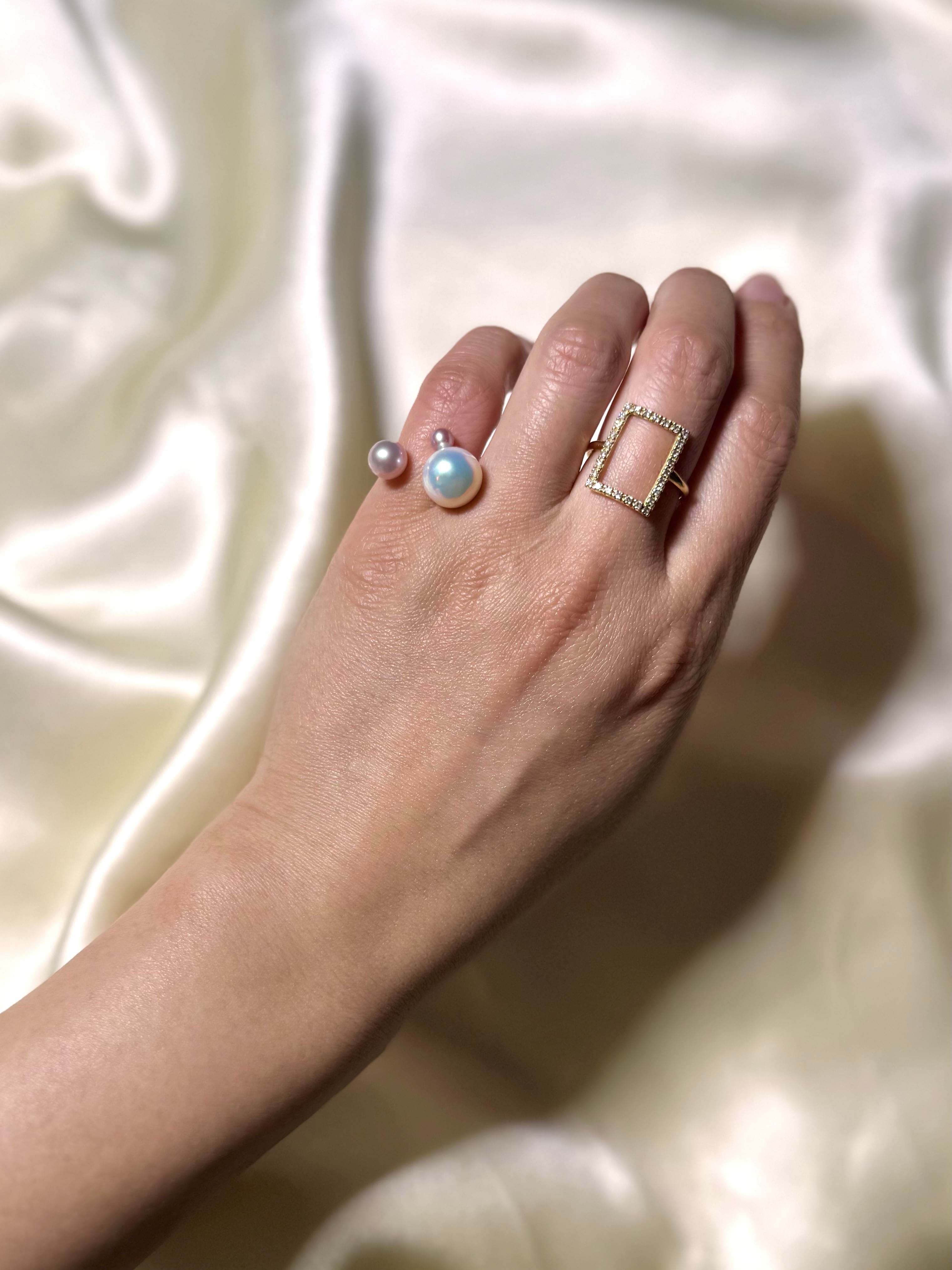 パールの質はそのままに、キッズの指におさまるミニマムなサイズ感が大人の小指にジャストフィット。