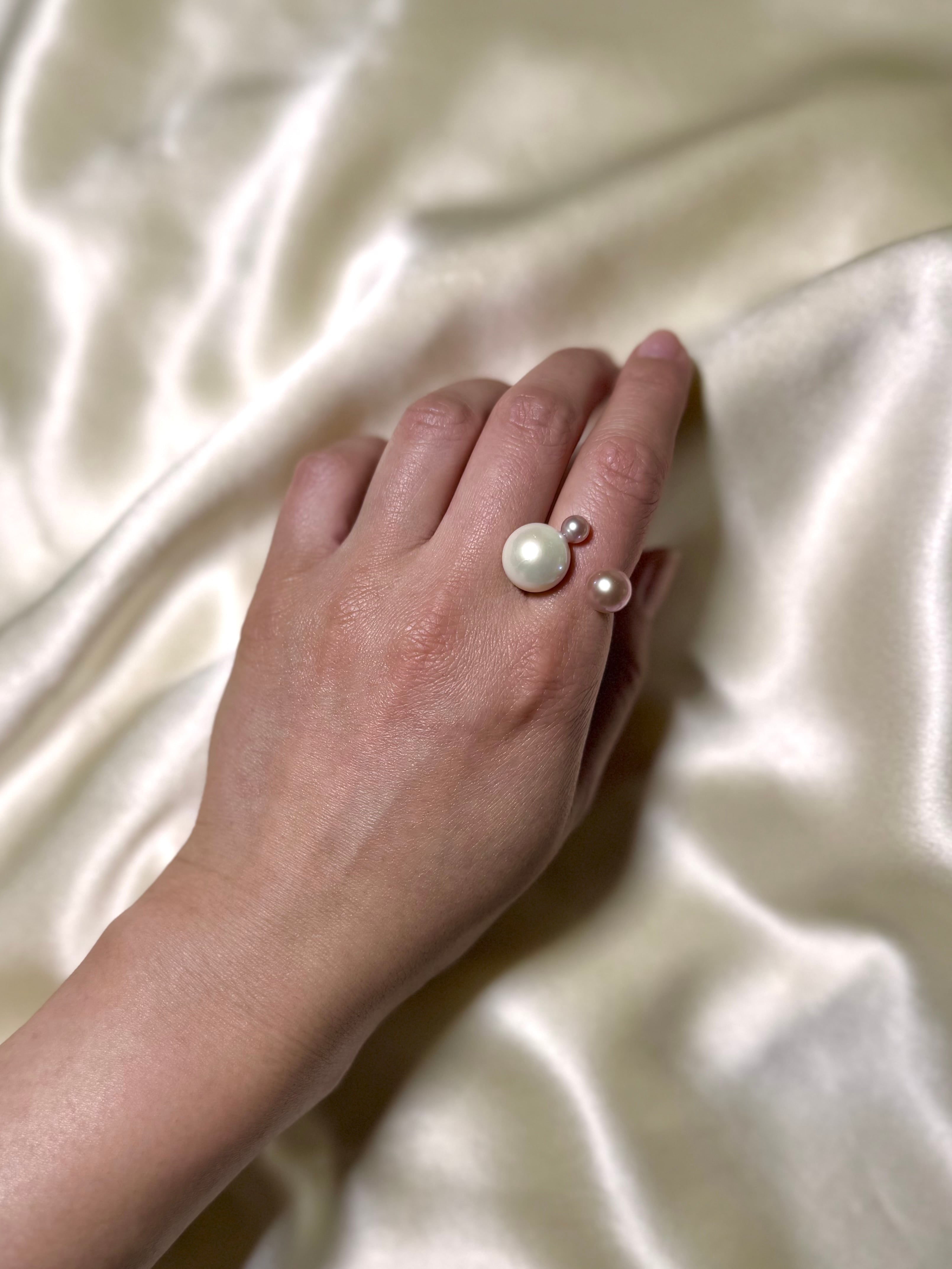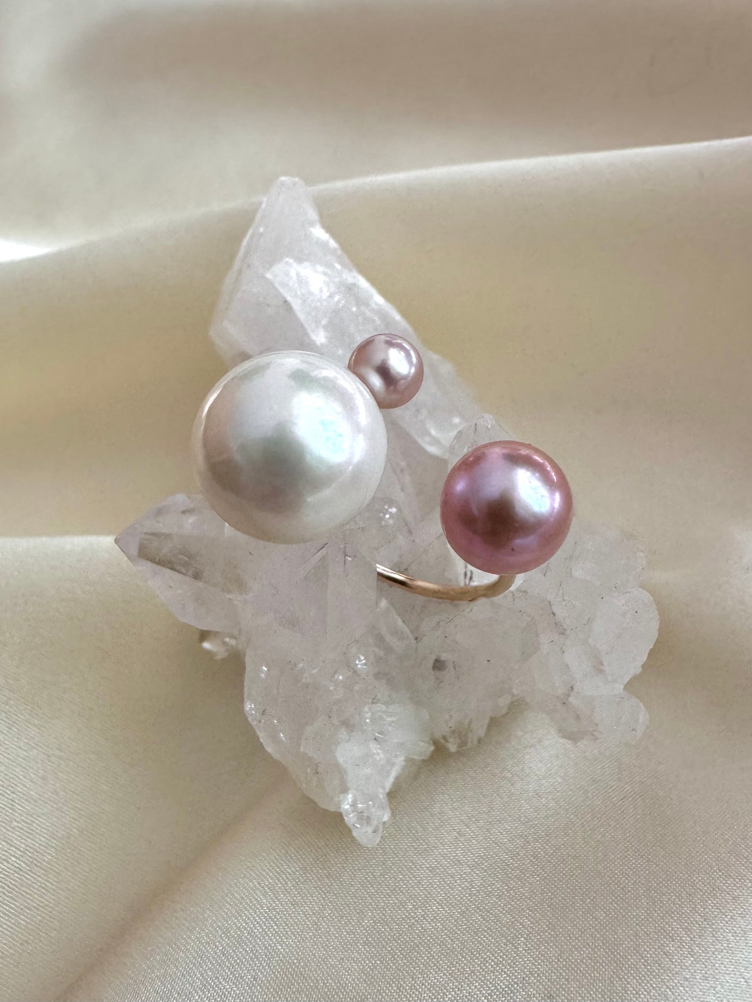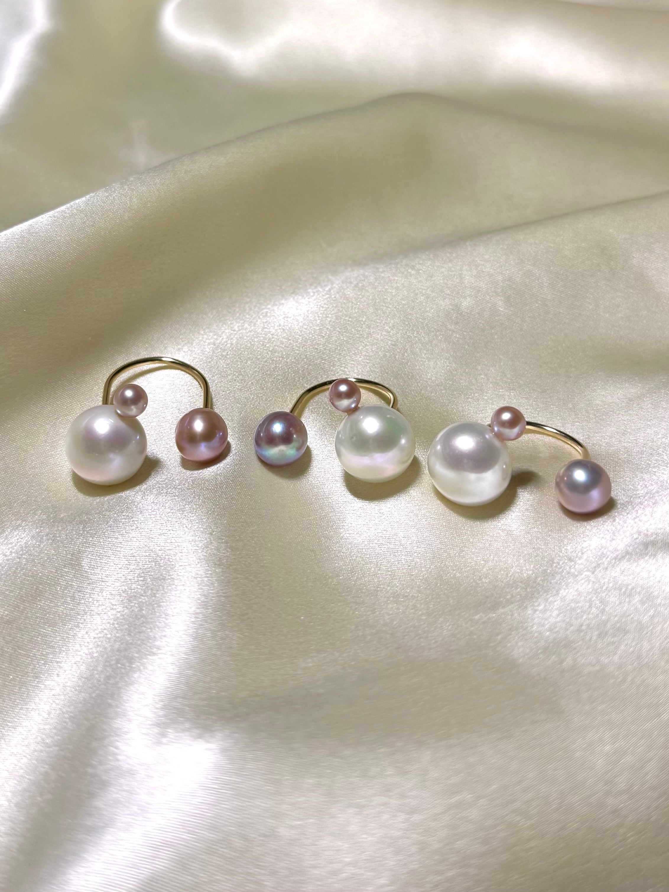 真珠の種類や形、カラーにとらわれず自由な発想で組み合わせるcombination ringシリーズ。
