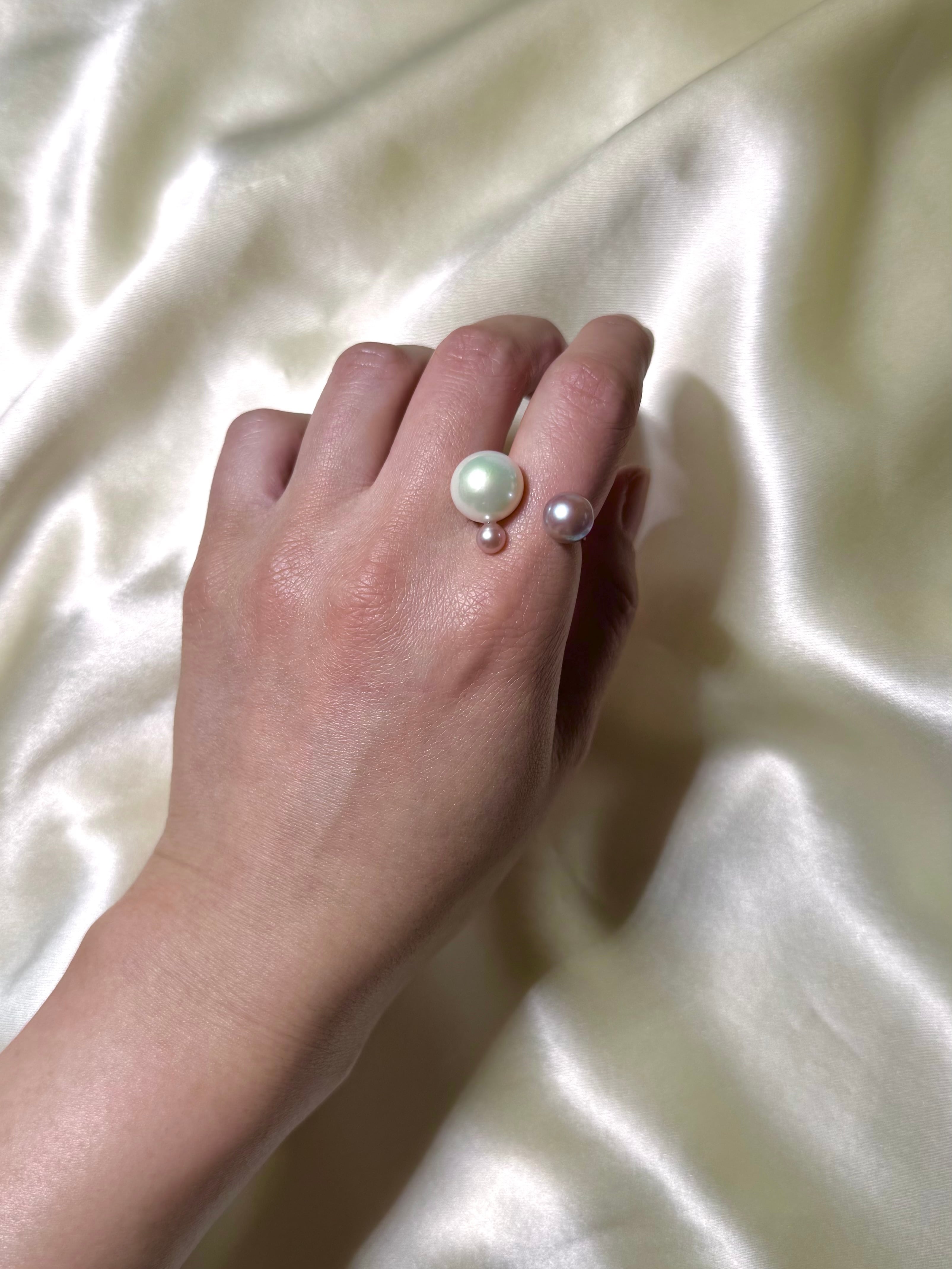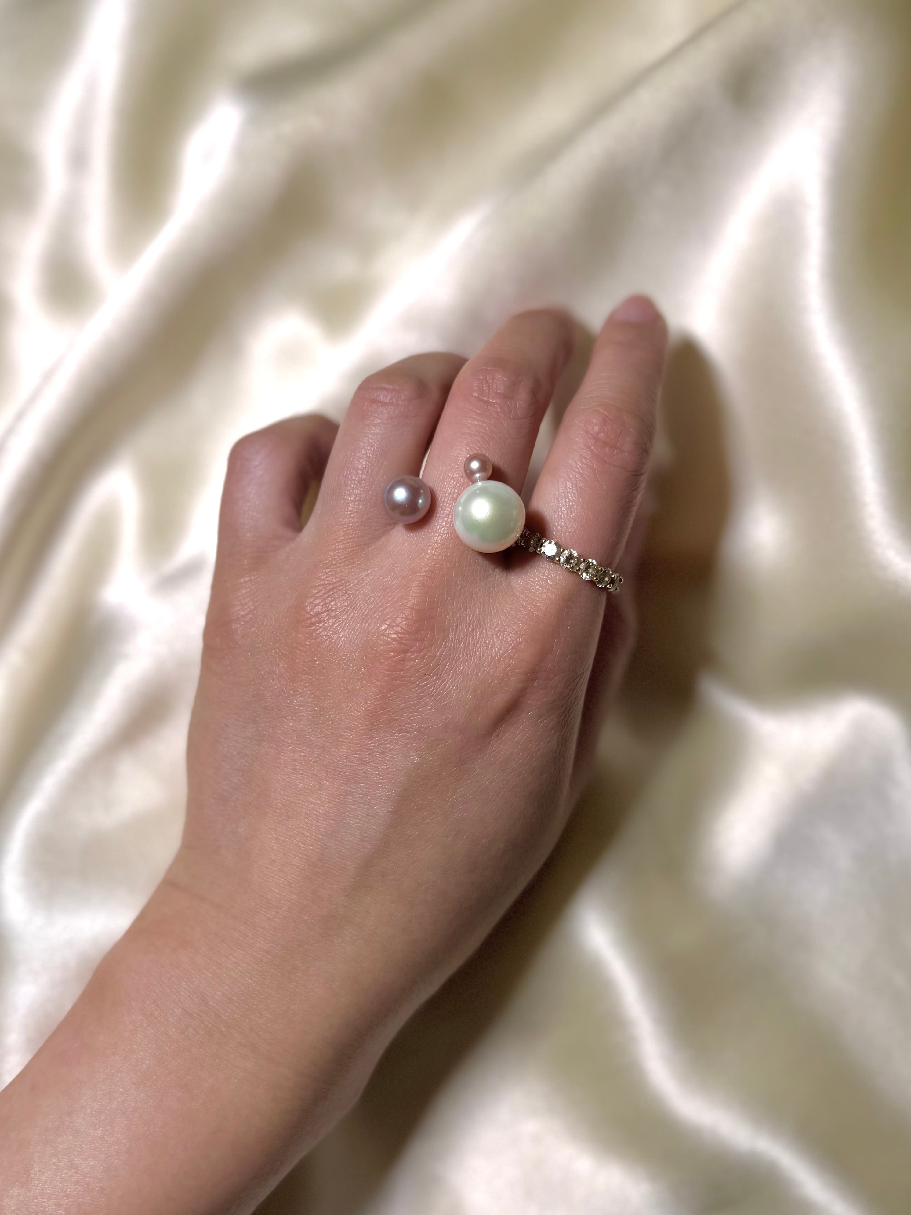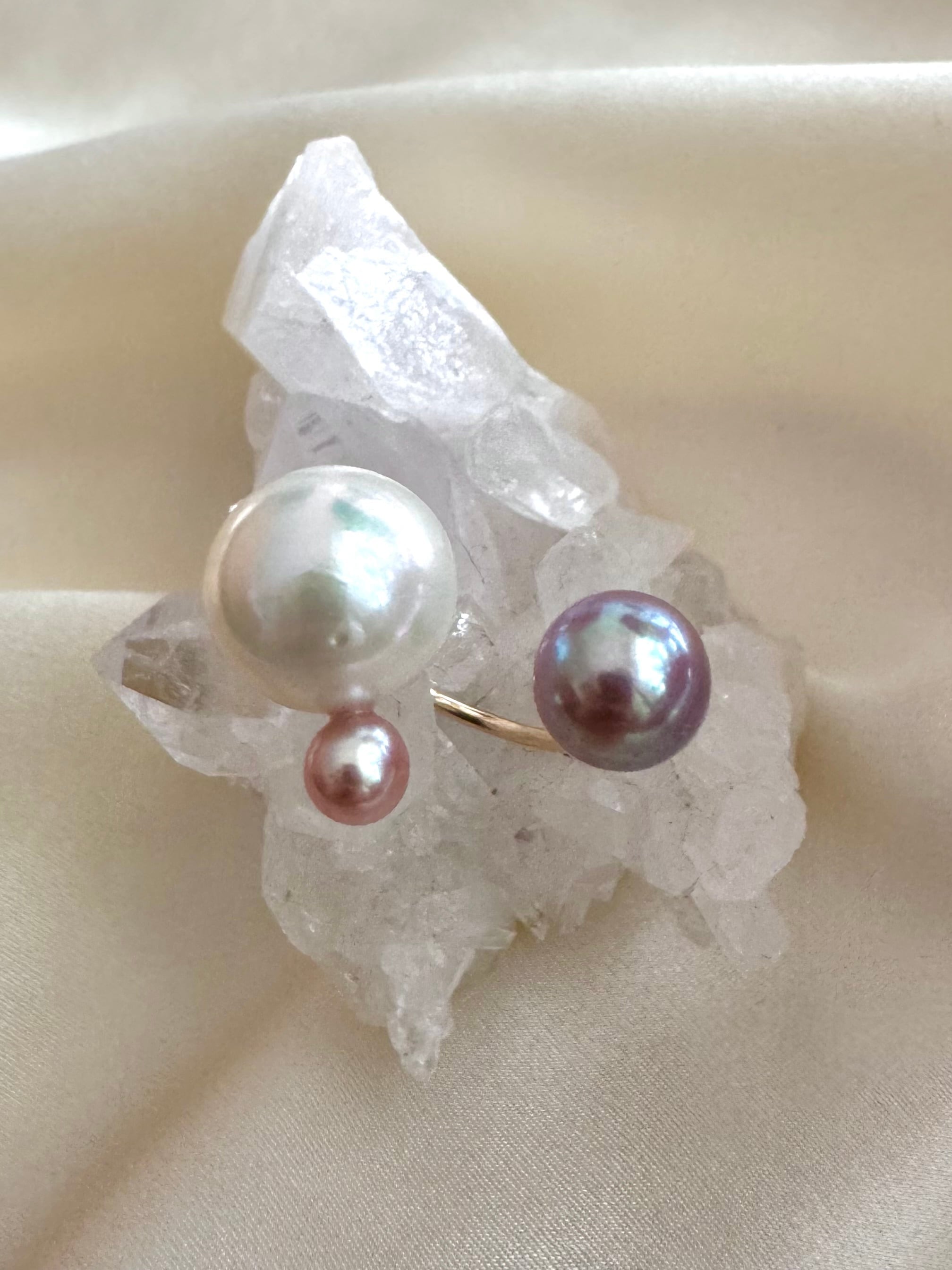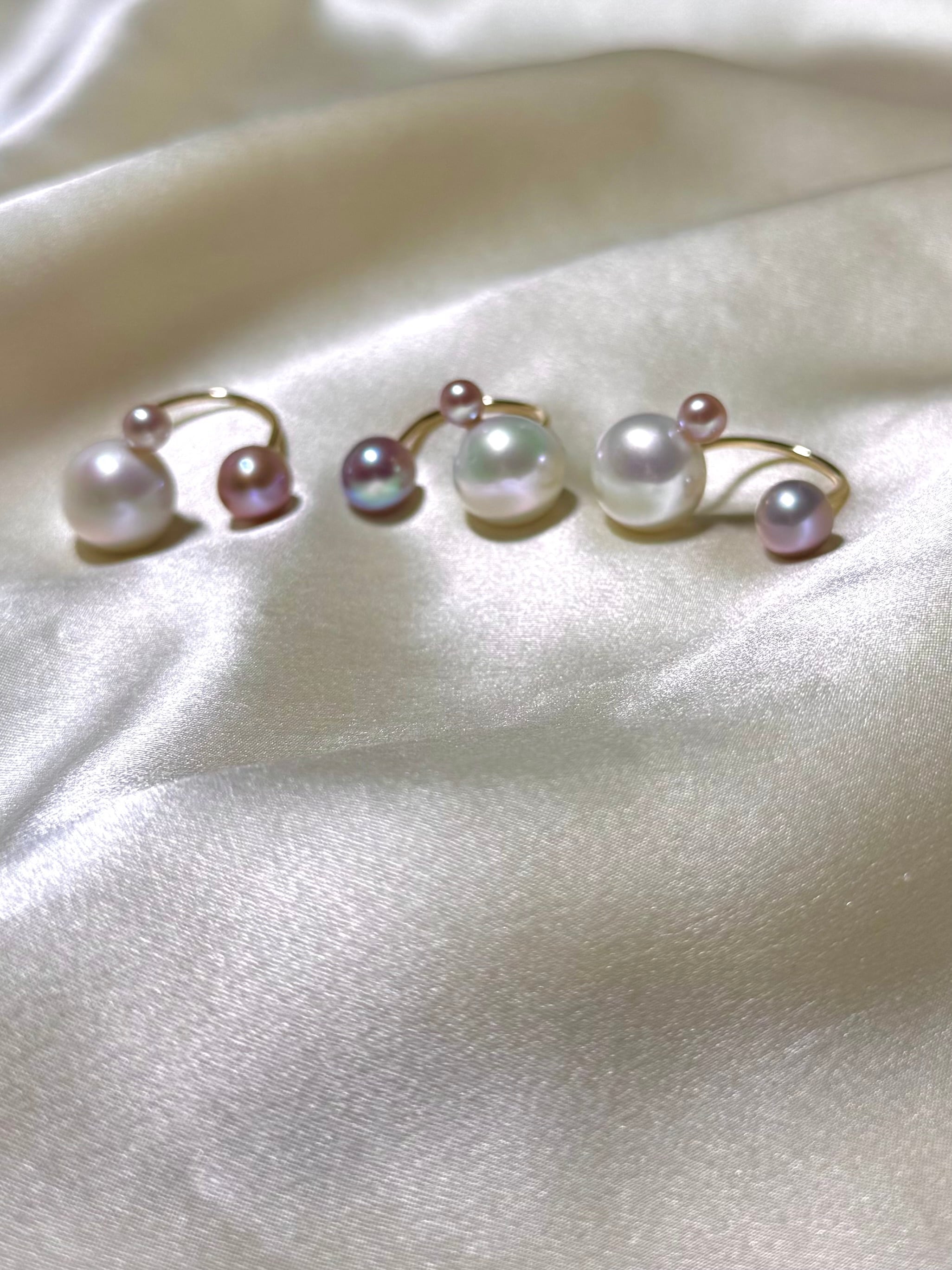 真珠の種類や形、カラーにとらわれず自由な発想で組み合わせるcombination ringシリーズ。
