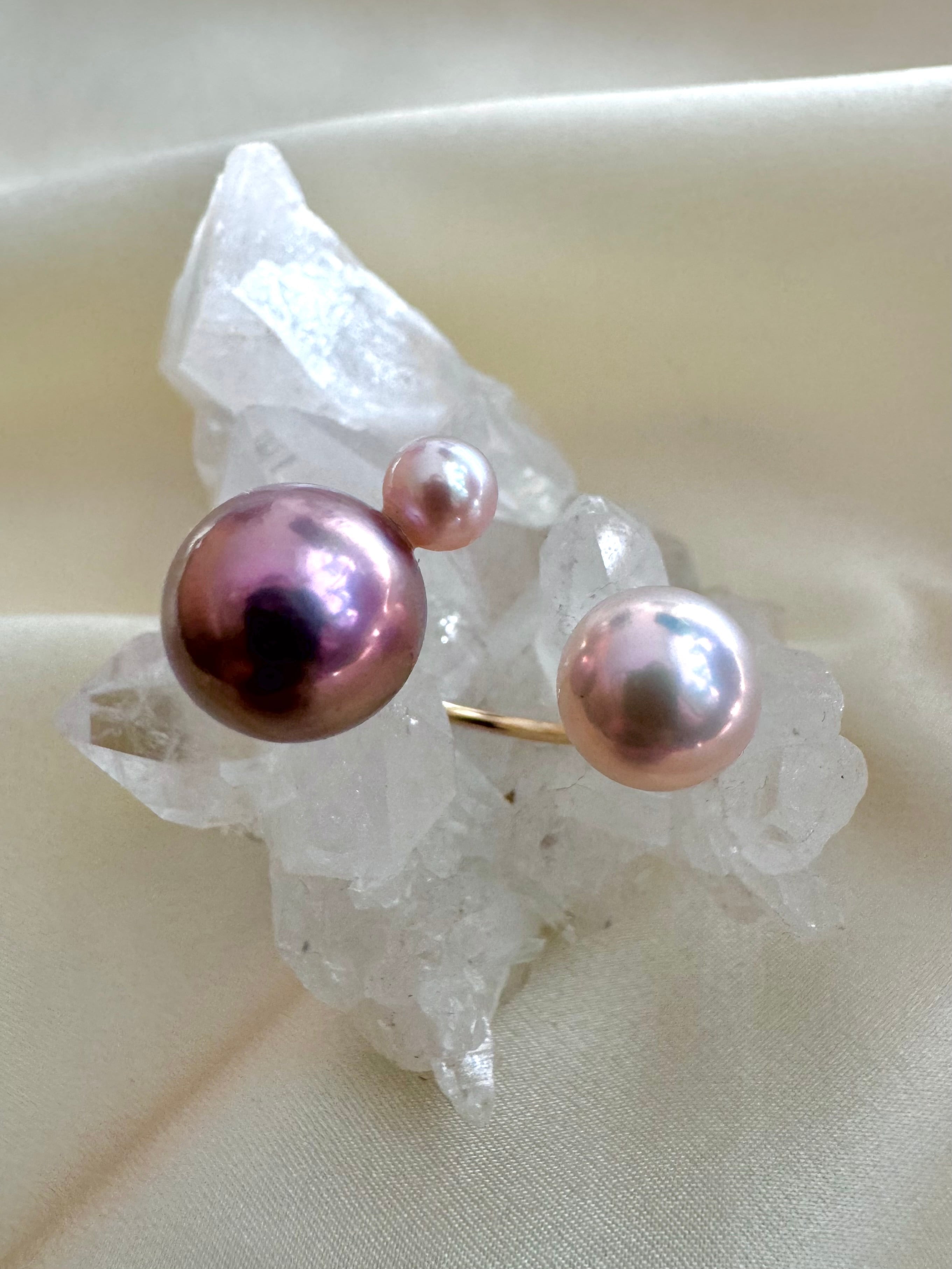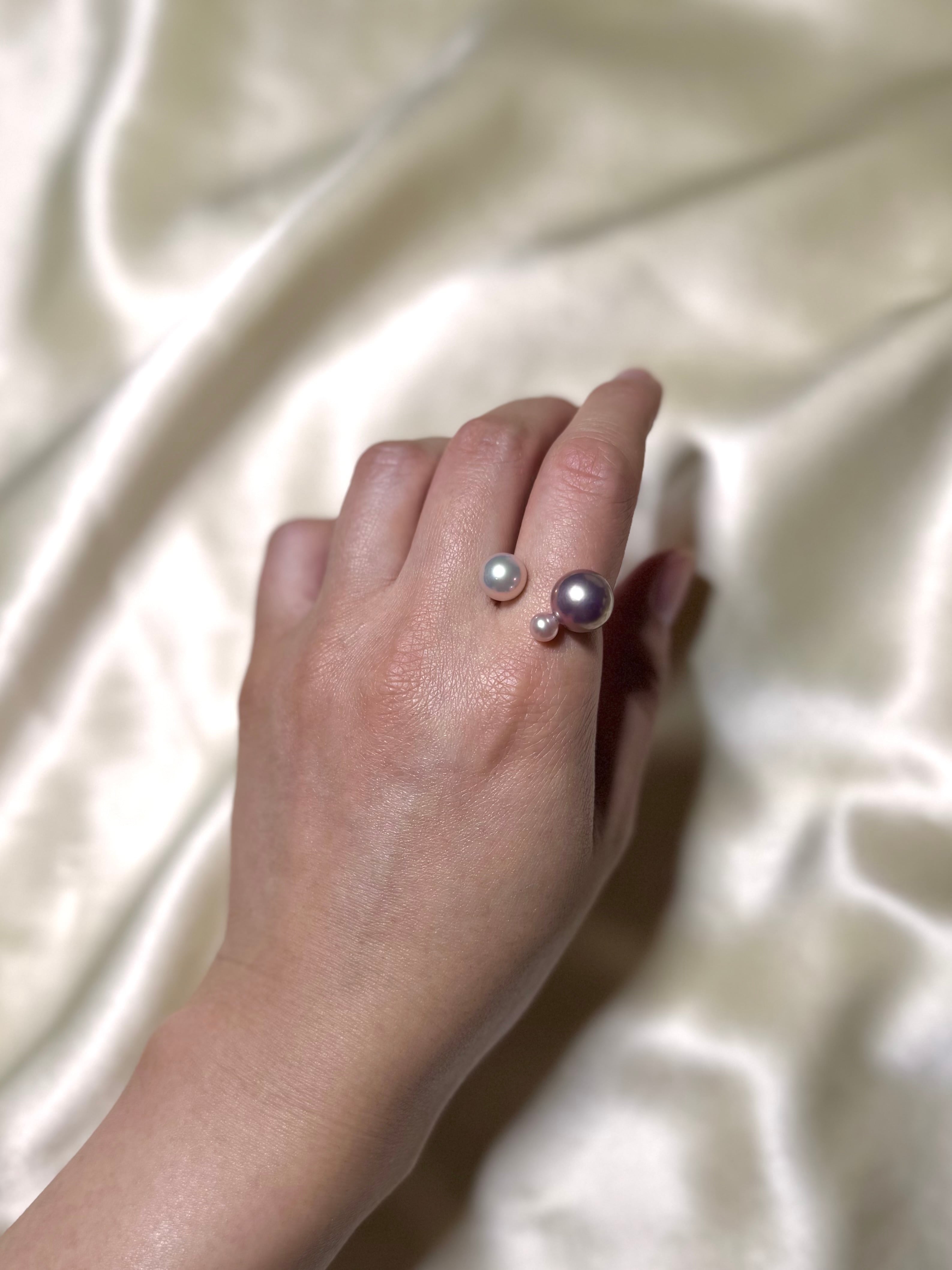 真珠の種類や形、カラーにとらわれず自由な発想で組み合わせるcombination ringシリーズ。