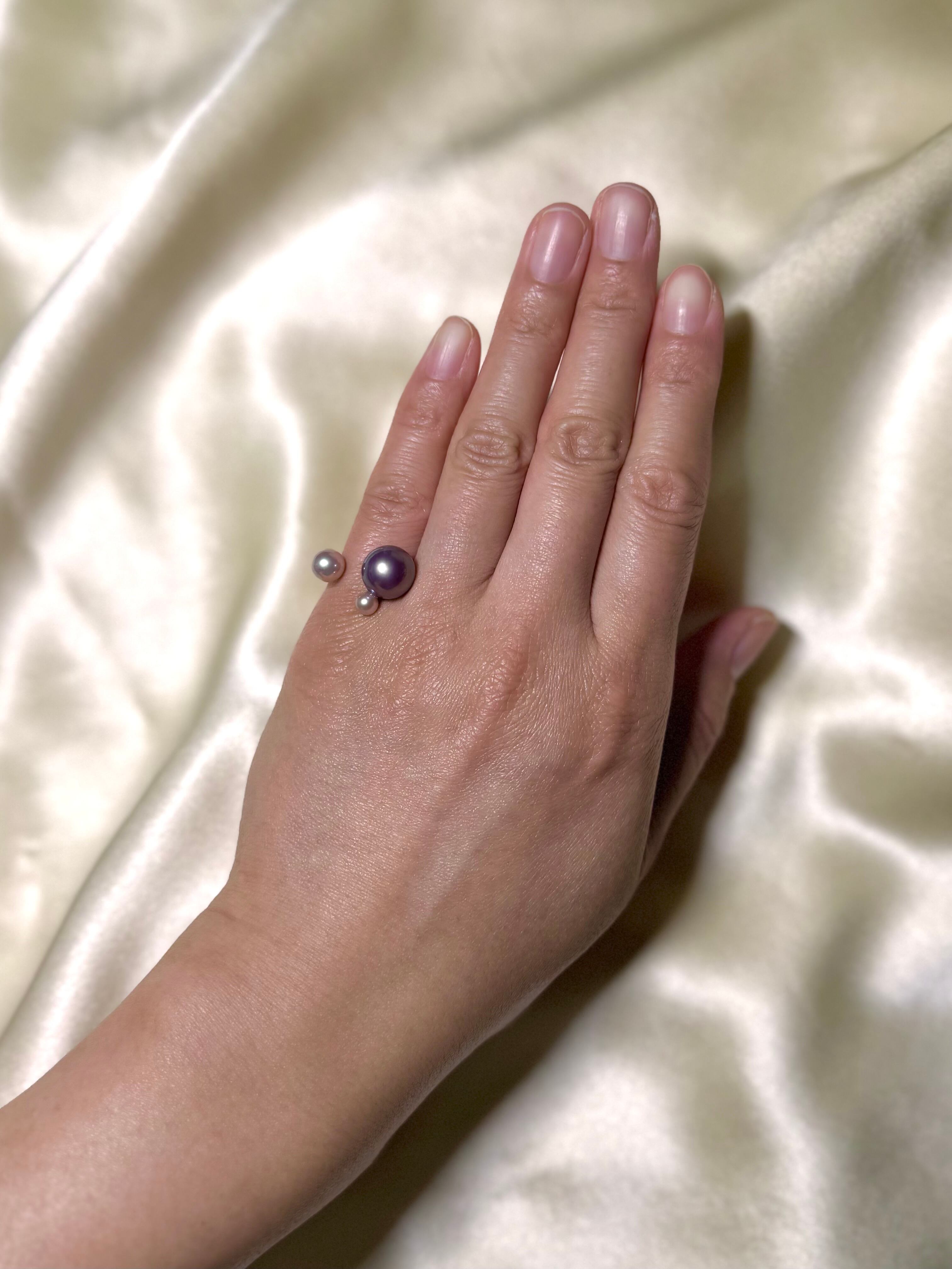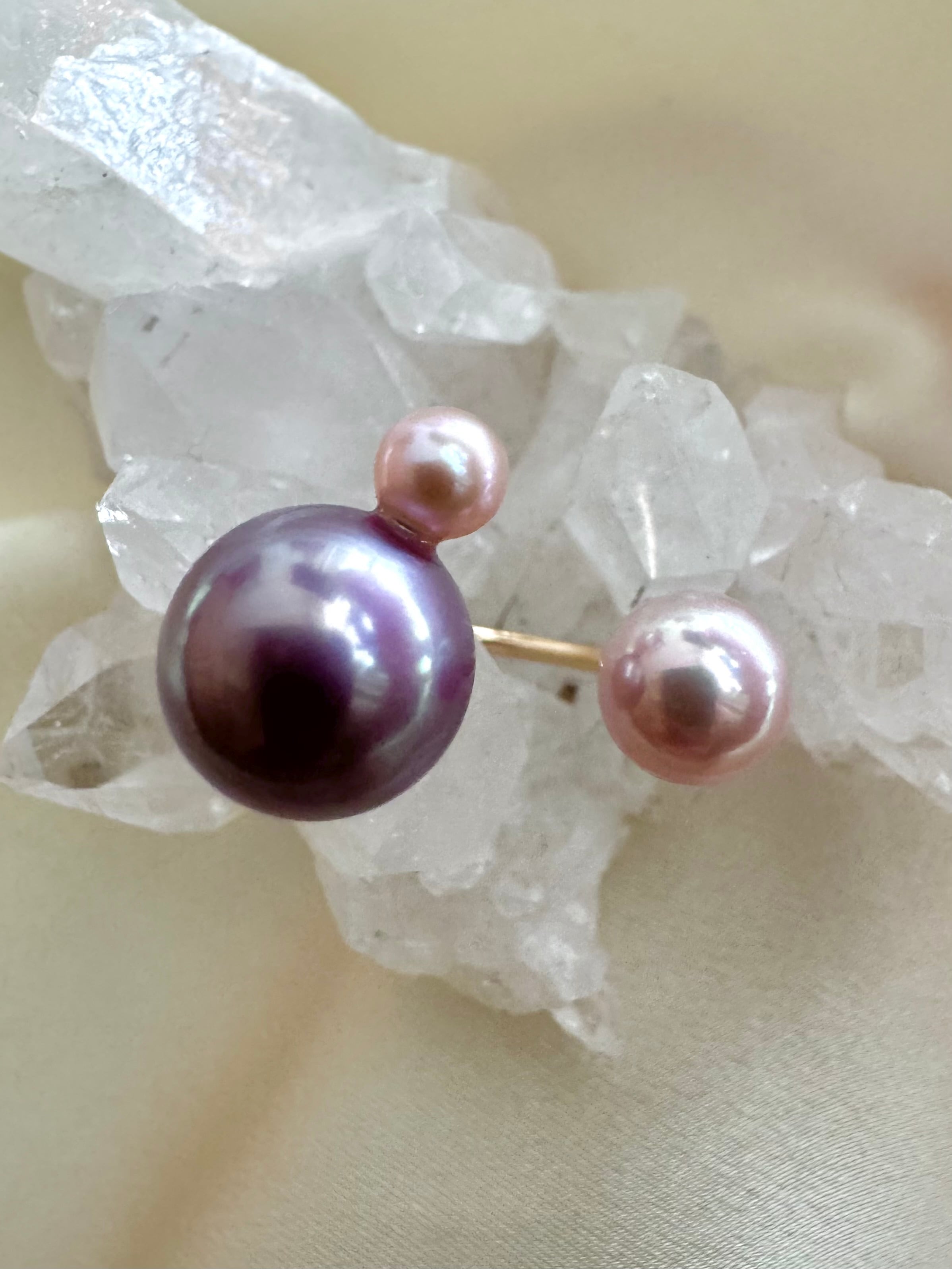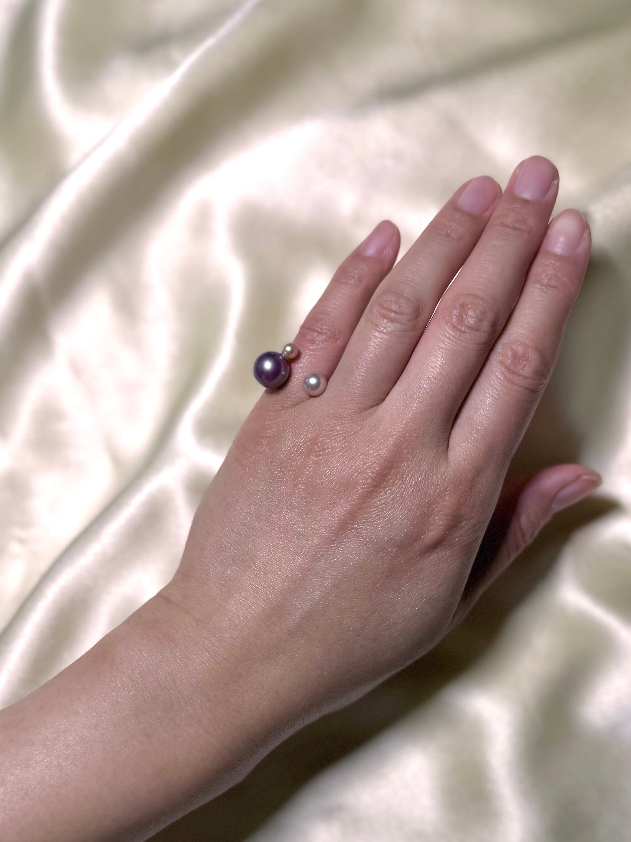 パールの質はそのままに、キッズの指におさまるミニマムなサイズ感が大人の小指にジャストフィット。