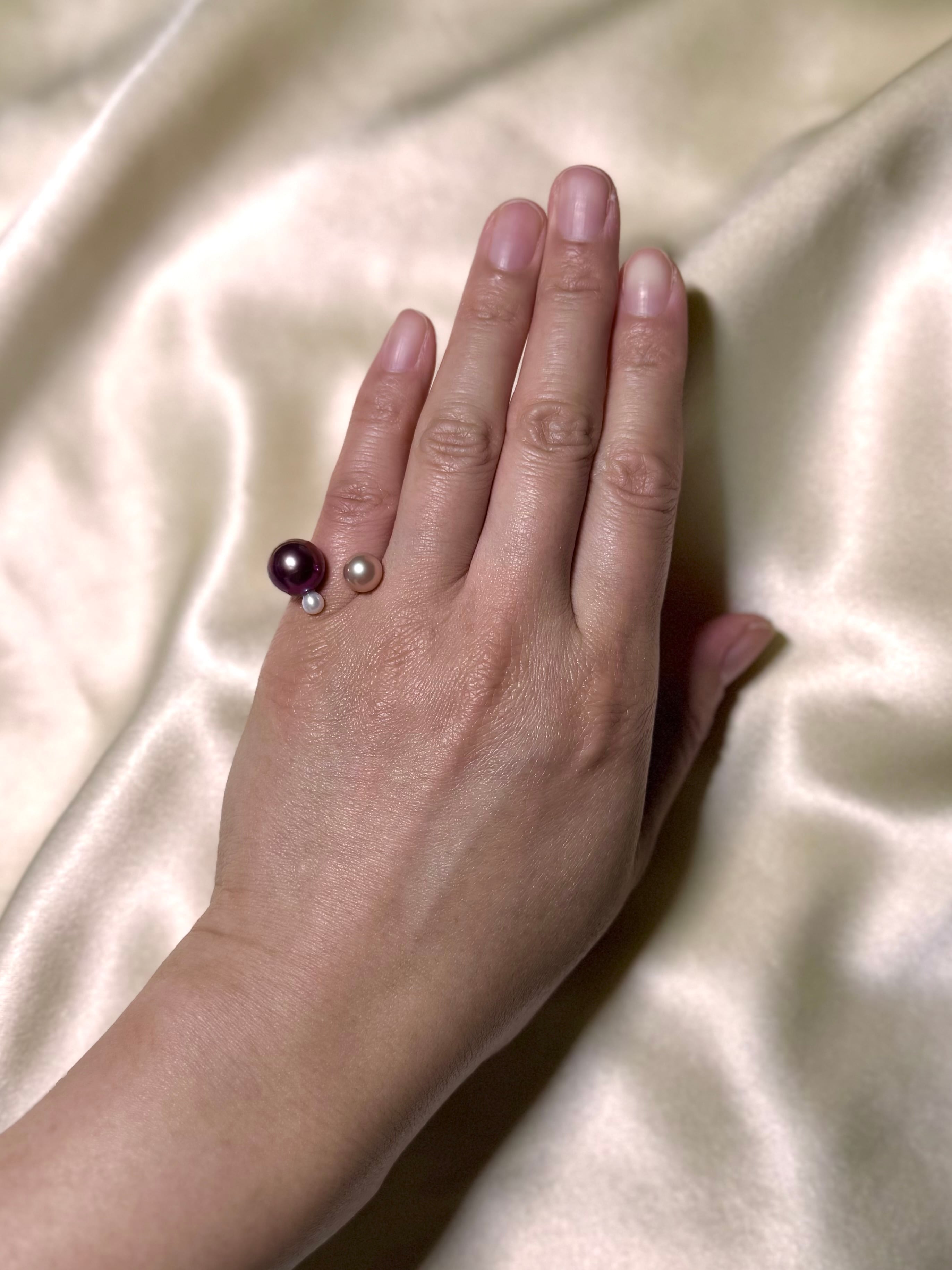 パールの質はそのままに、キッズの指におさまるミニマムなサイズ感が大人の小指にジャストフィット。