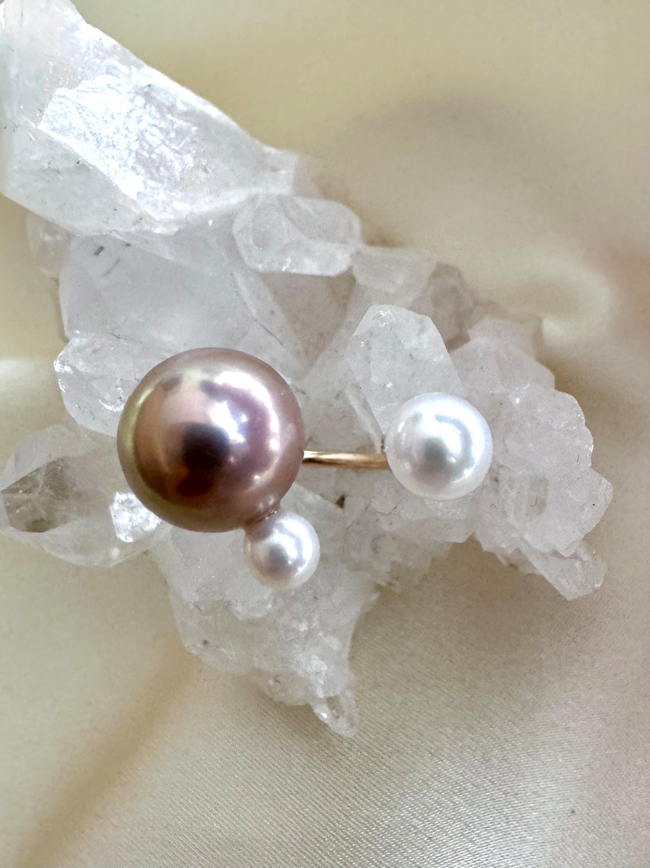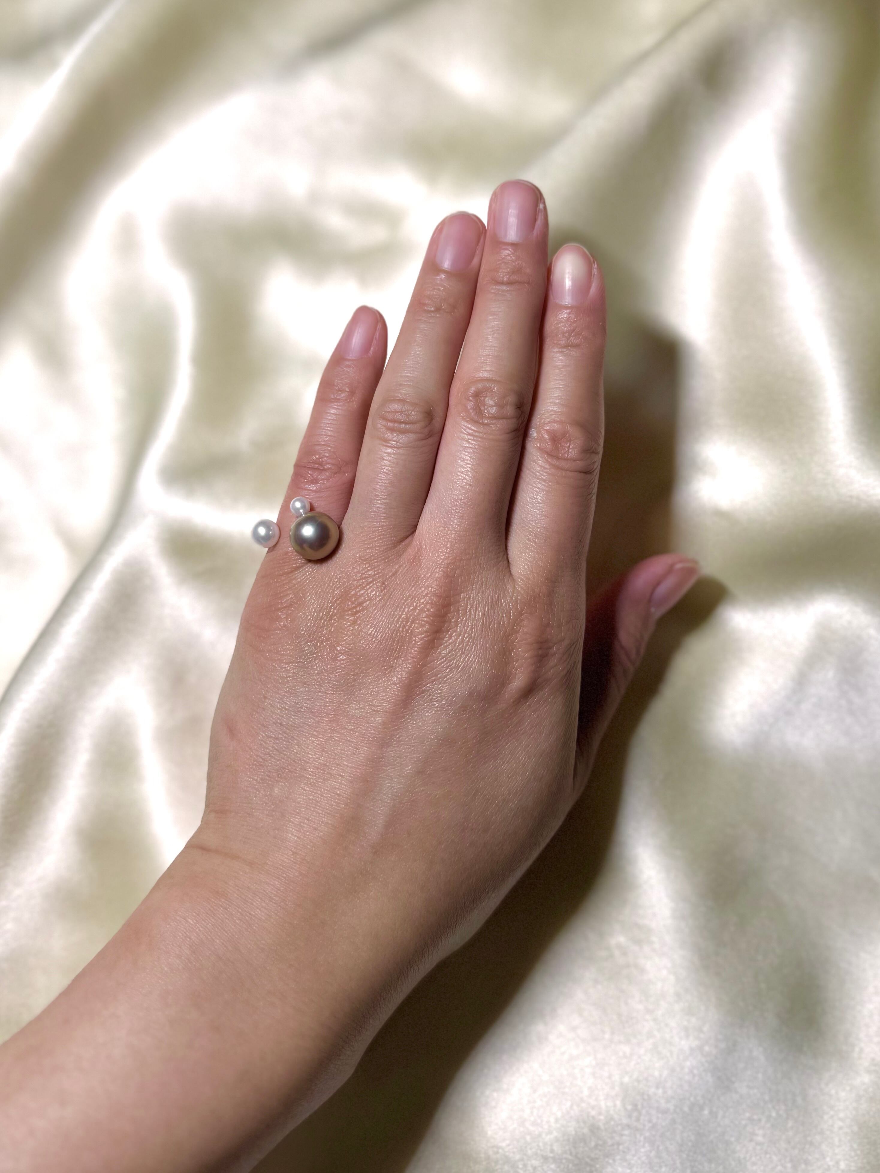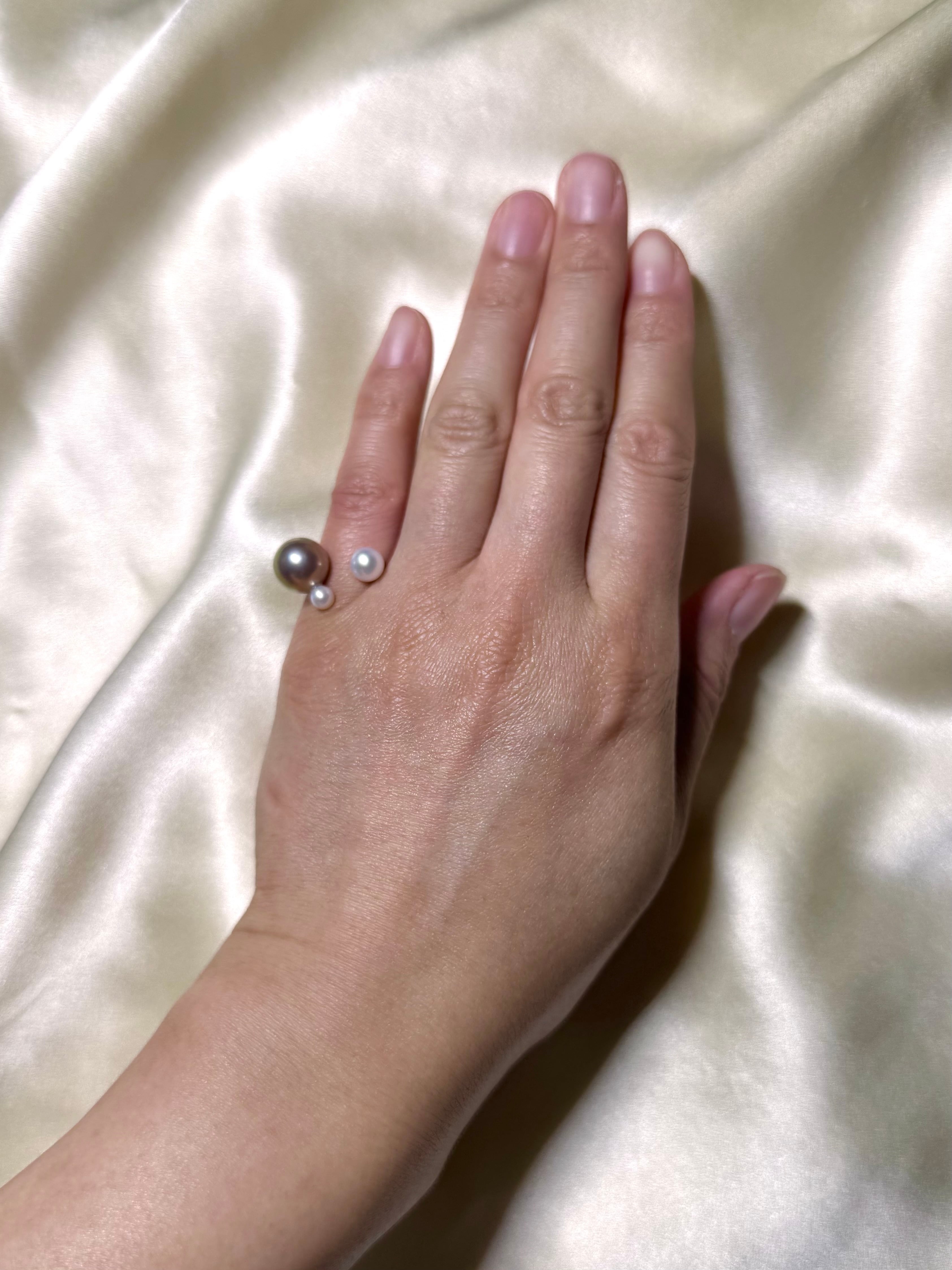 パールの質はそのままに、キッズの指におさまるミニマムなサイズ感が大人の小指にジャストフィット。