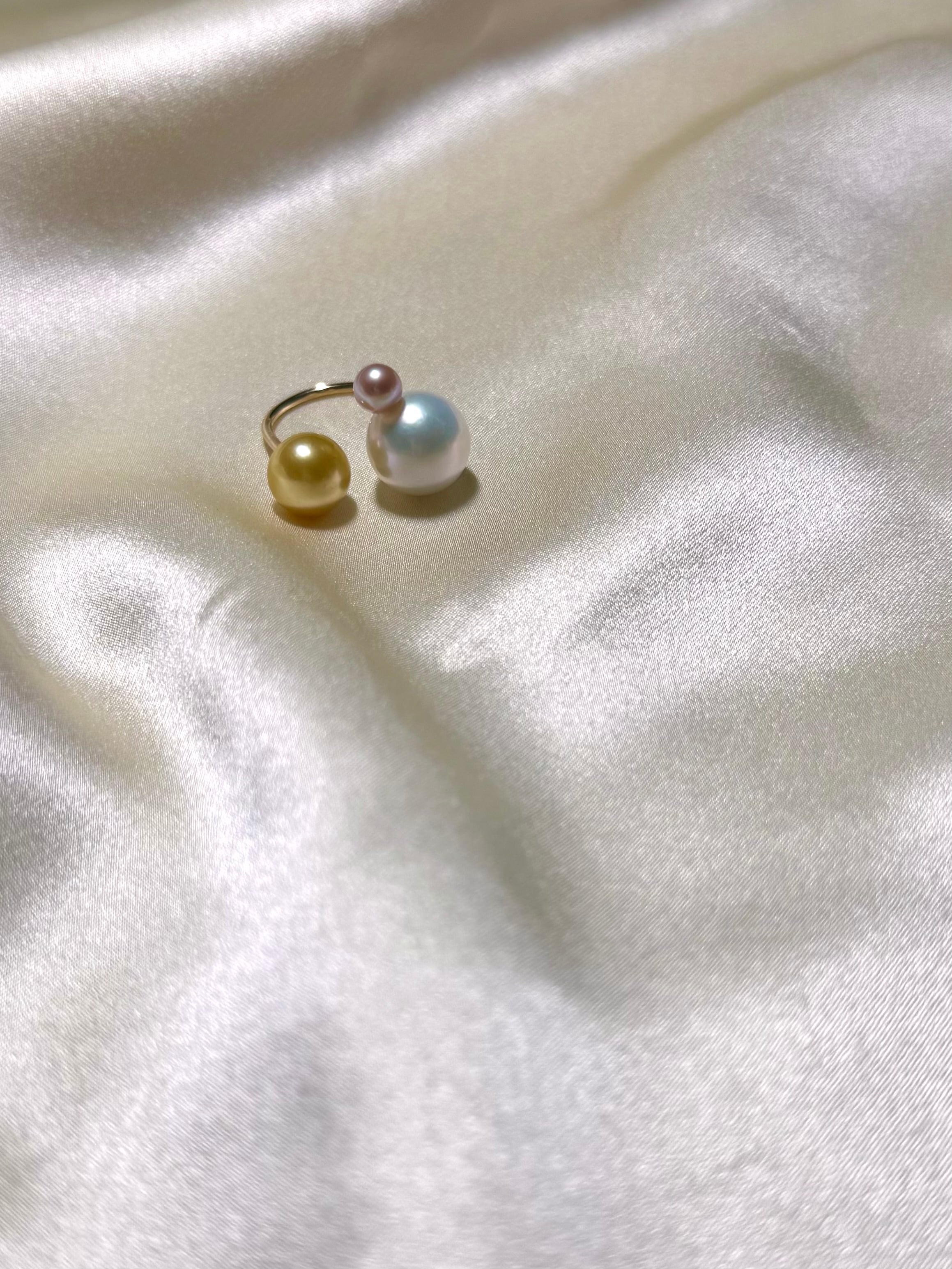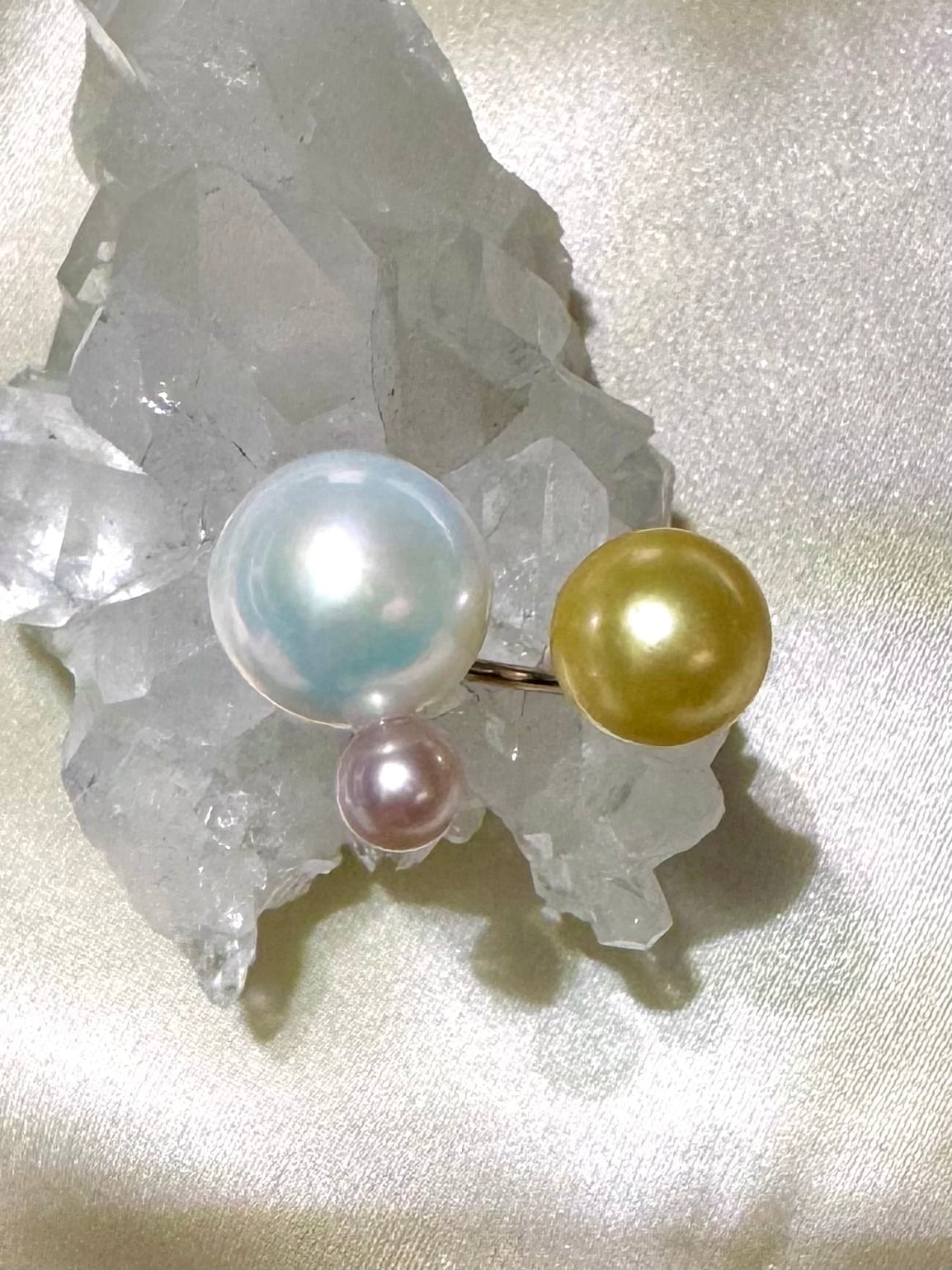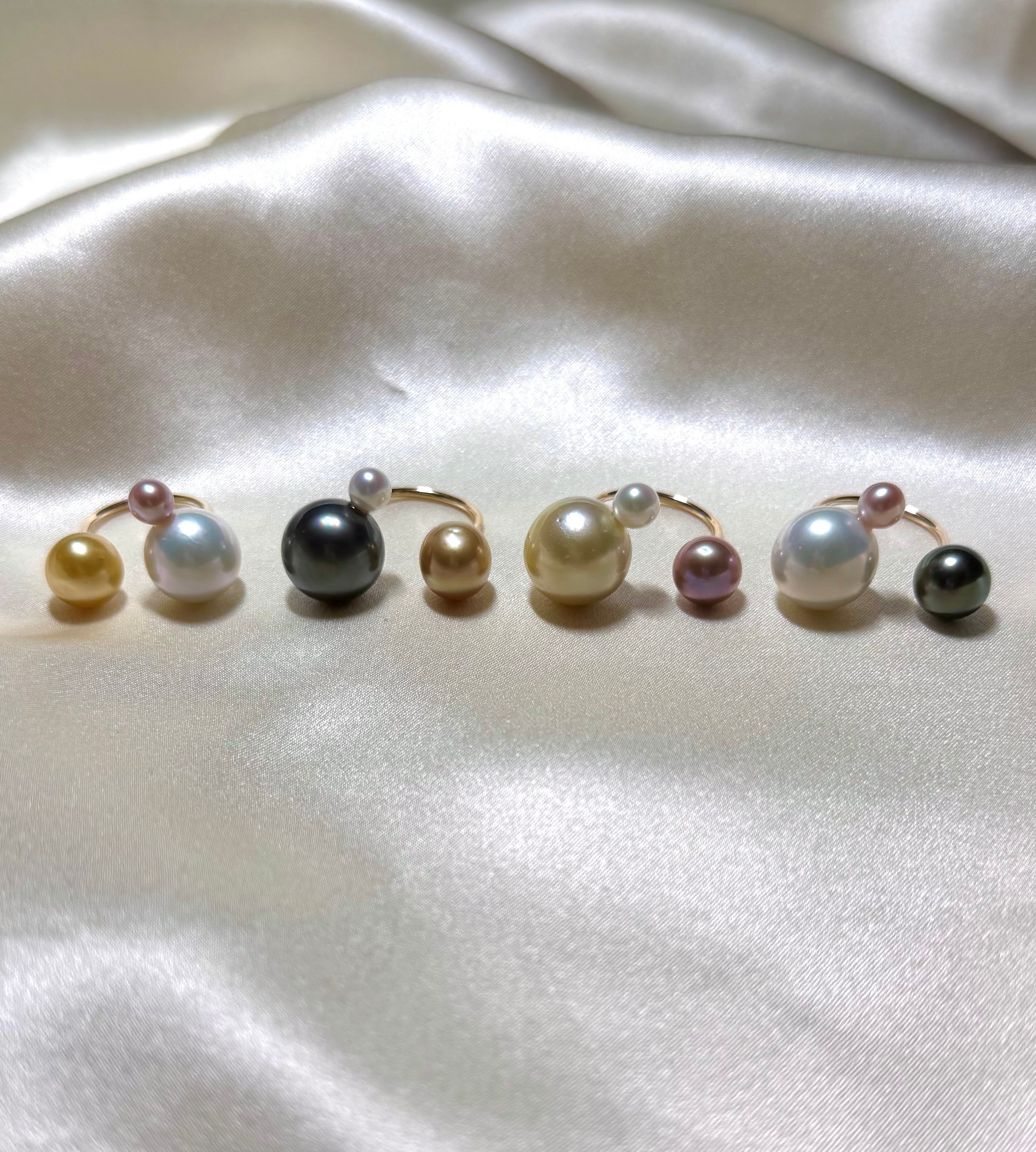 yuma ringよりもパールの組み合わせを柔軟に、色や形、珠種様々にこだわって組み合わせているcombination ringシリーズです。