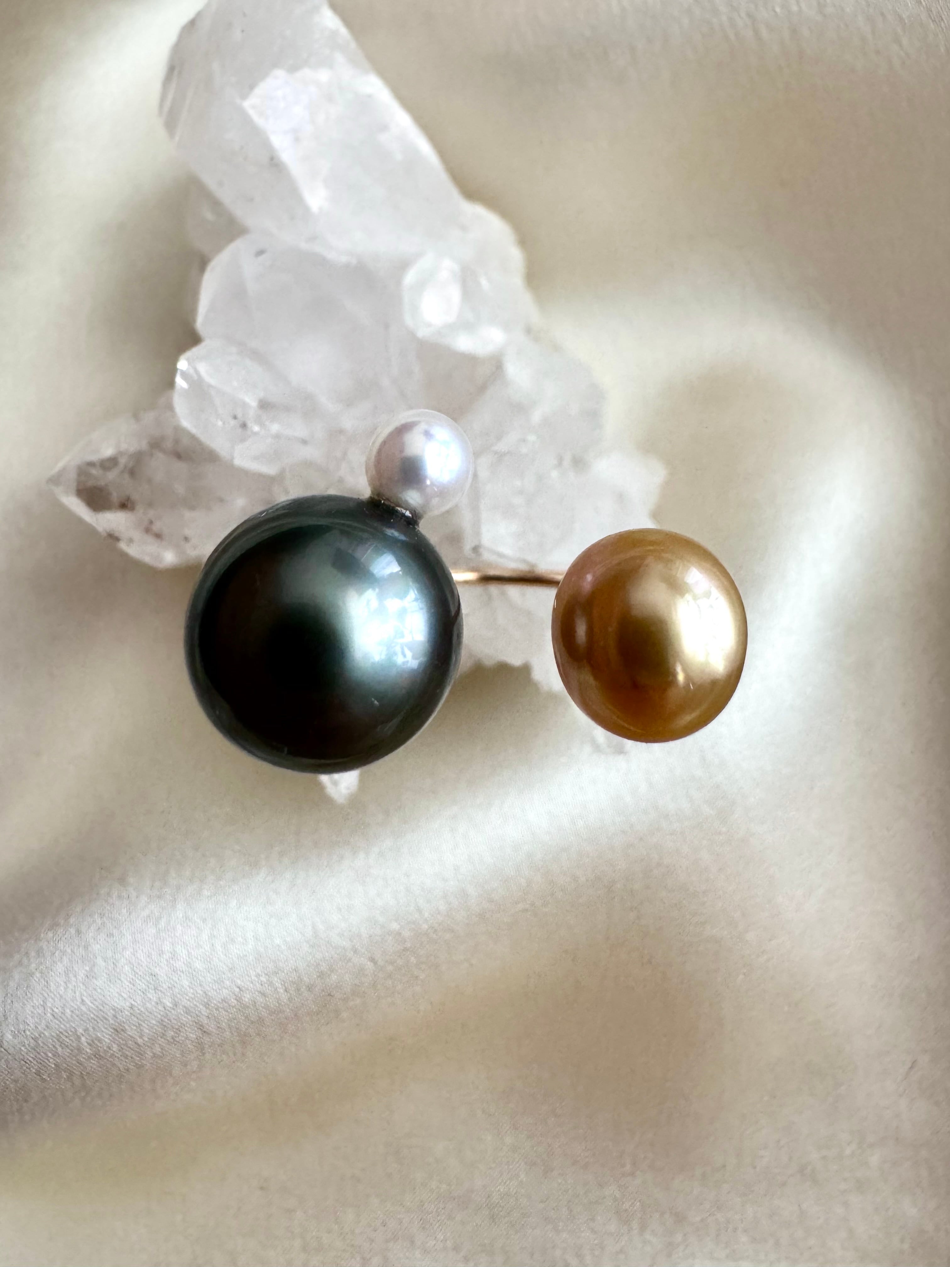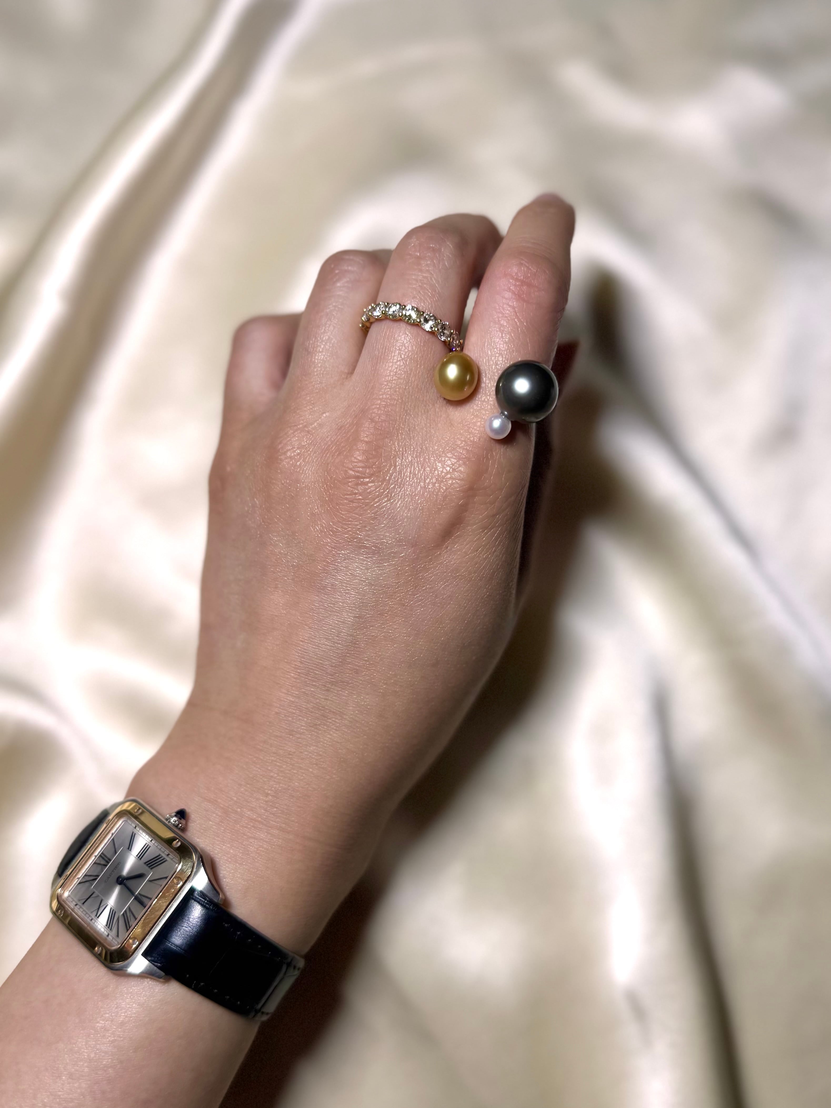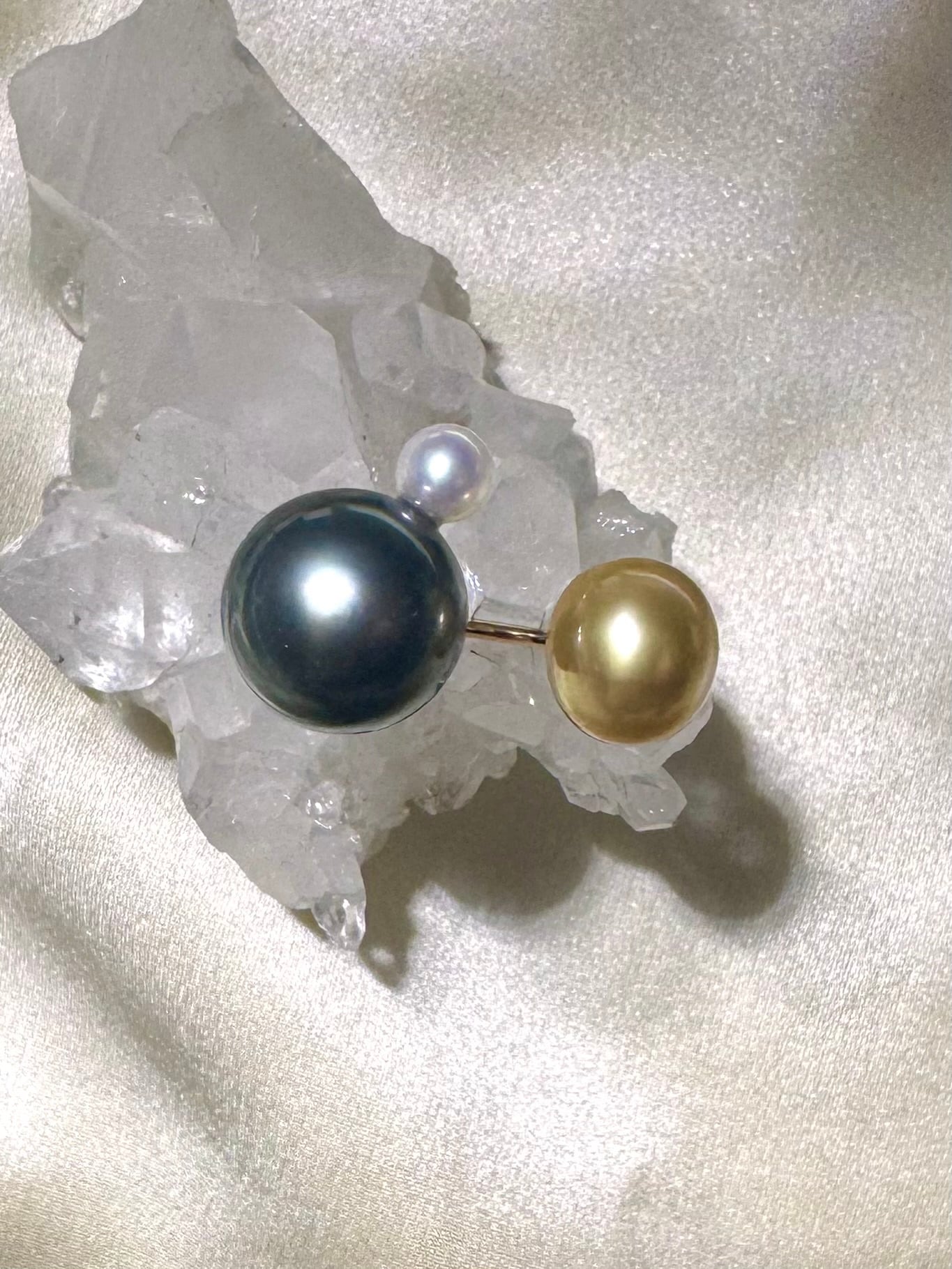 yuma ringよりもパールの組み合わせを柔軟に、色や形、珠種様々にこだわって組み合わせているcombination ringシリーズです。