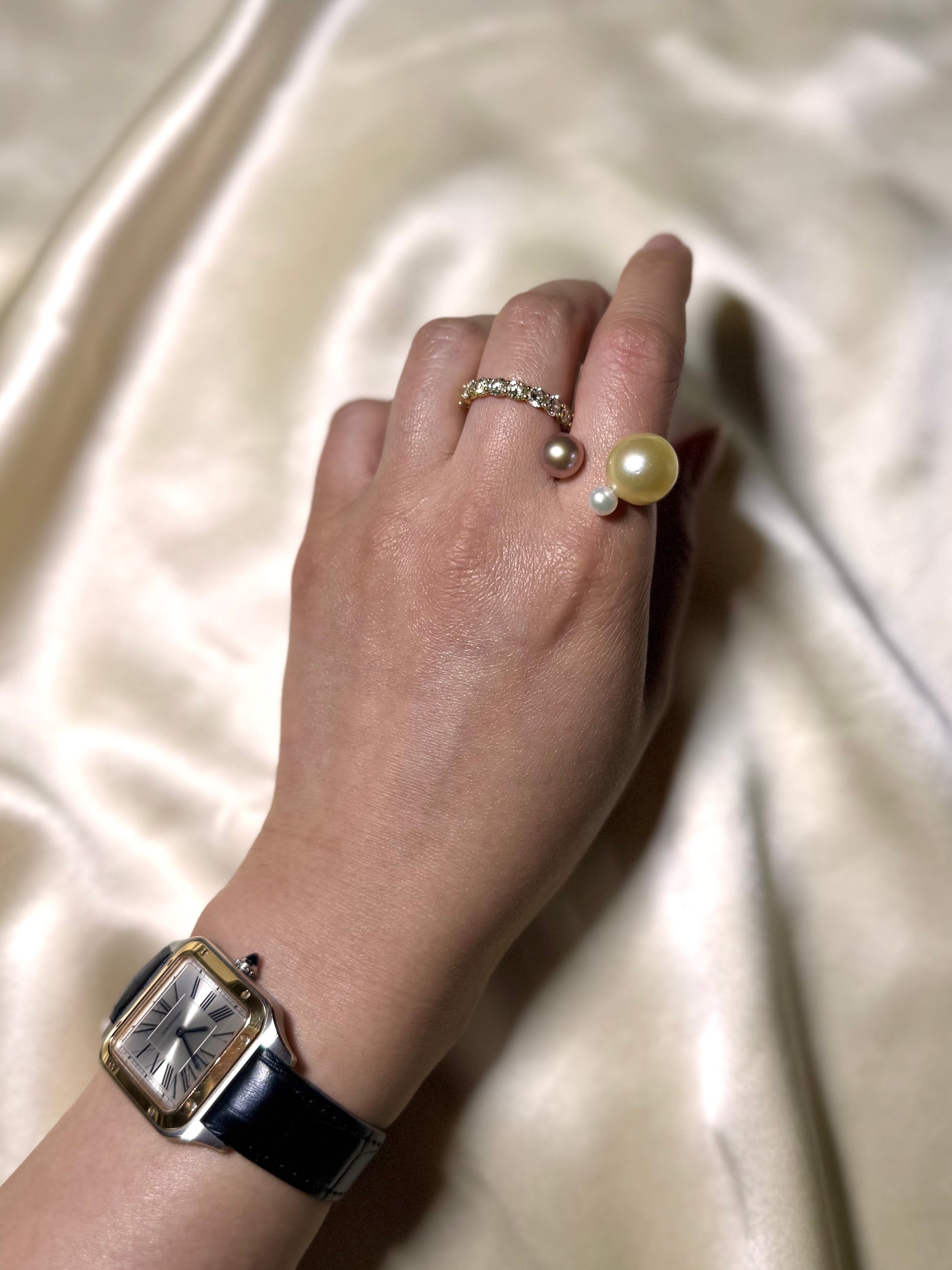 yuma ringよりもパールの組み合わせを柔軟に、色や形、珠種様々にこだわって組み合わせているcombination ringシリーズです。