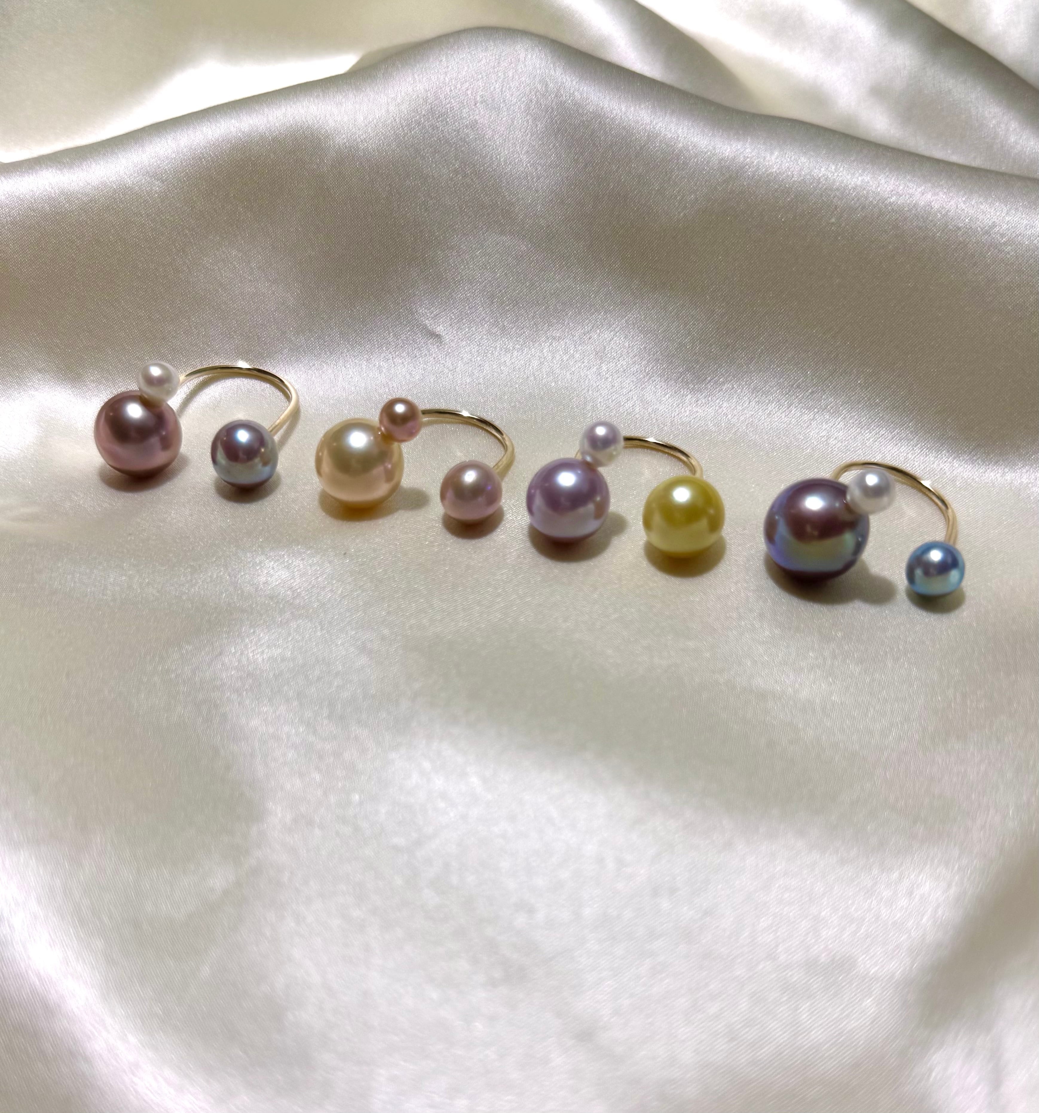 yuma ringよりもパールの組み合わせを柔軟に、色や形、珠種様々にこだわって組み合わせているcombination ringシリーズです。