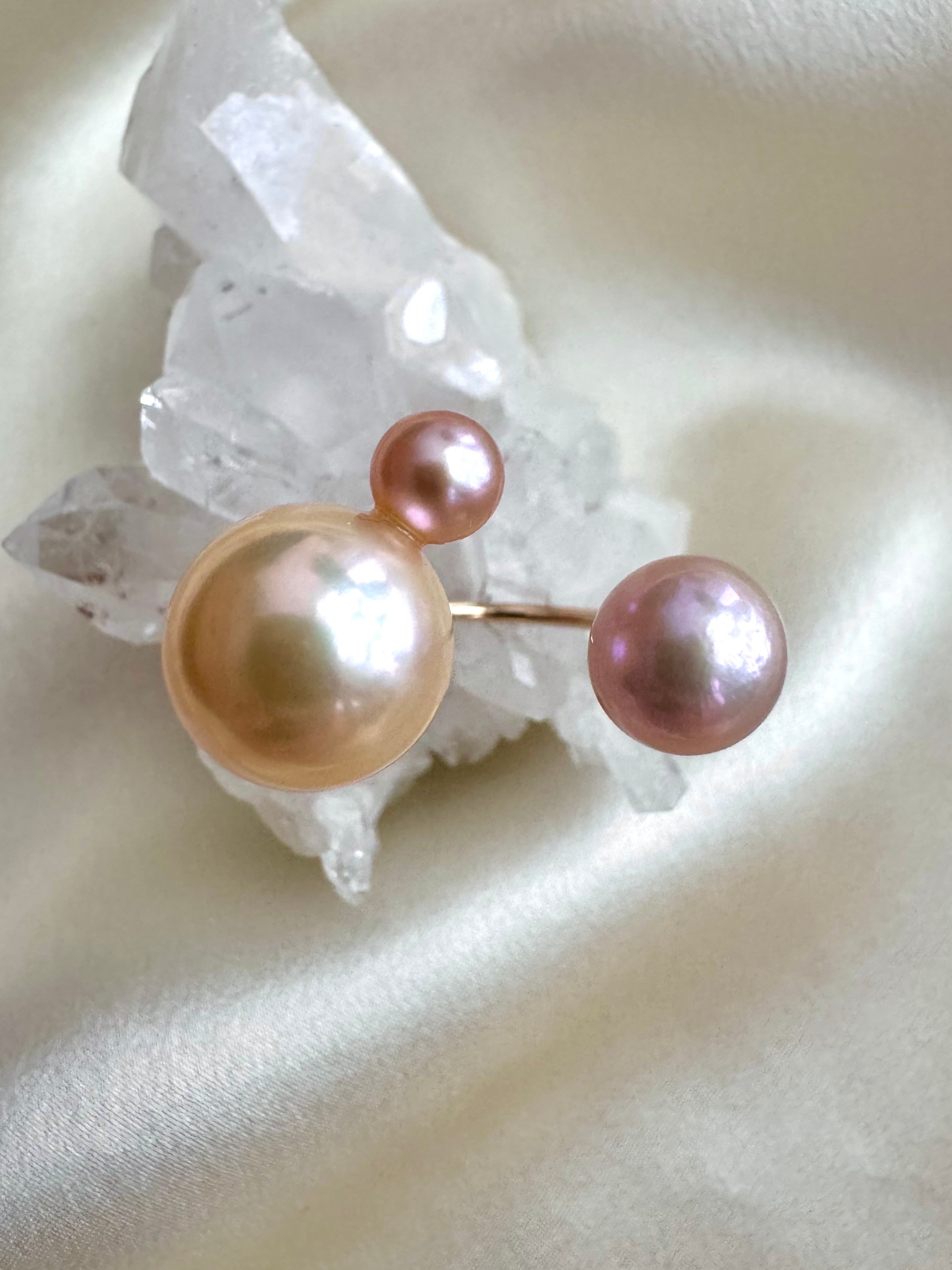 yuma ringよりもパールの組み合わせを柔軟に、色や形、珠種様々にこだわって組み合わせているcombination ringシリーズです。