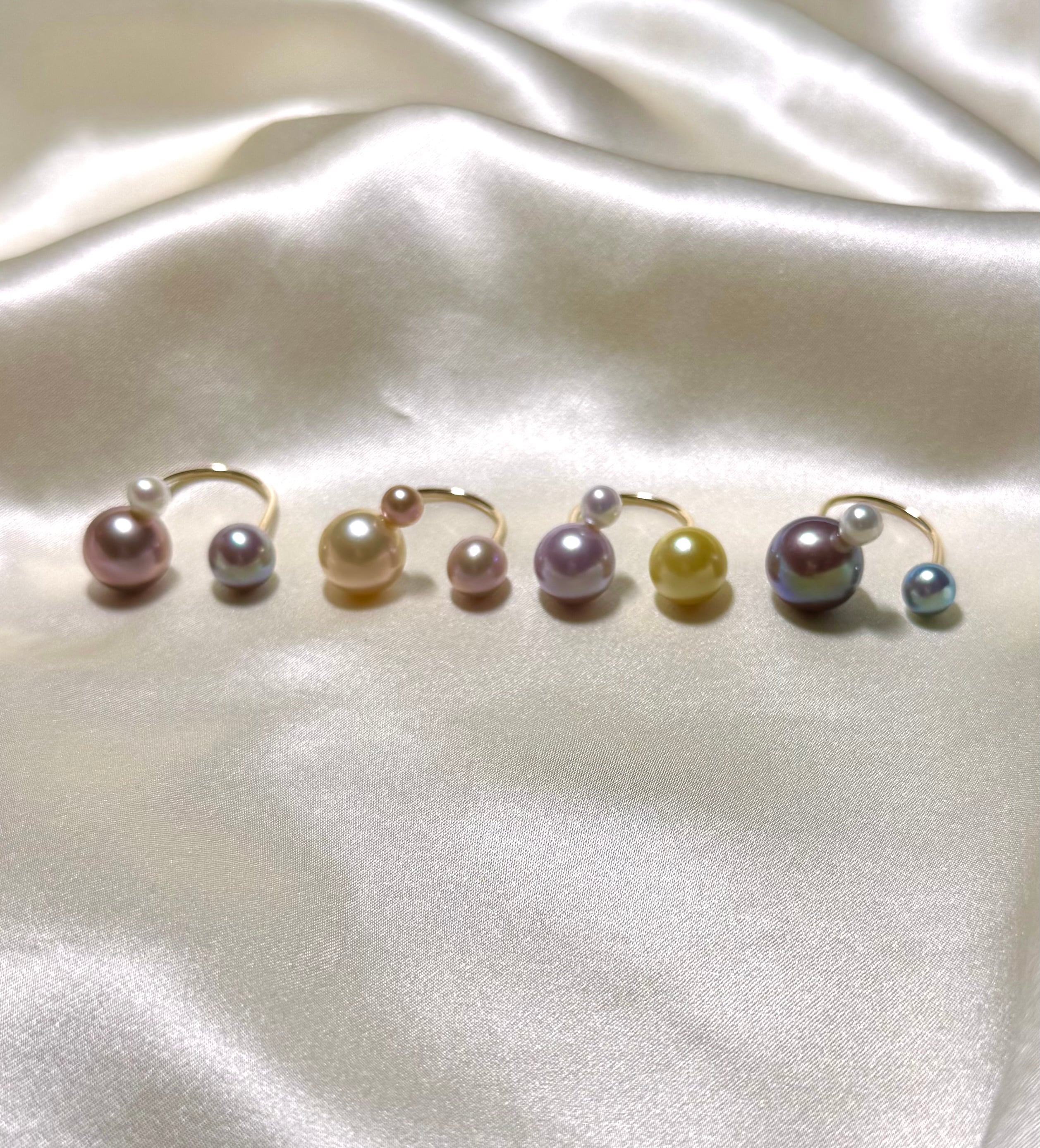 yuma ringよりもパールの組み合わせを柔軟に、色や形、珠種様々にこだわって組み合わせているcombination ringシリーズです。
