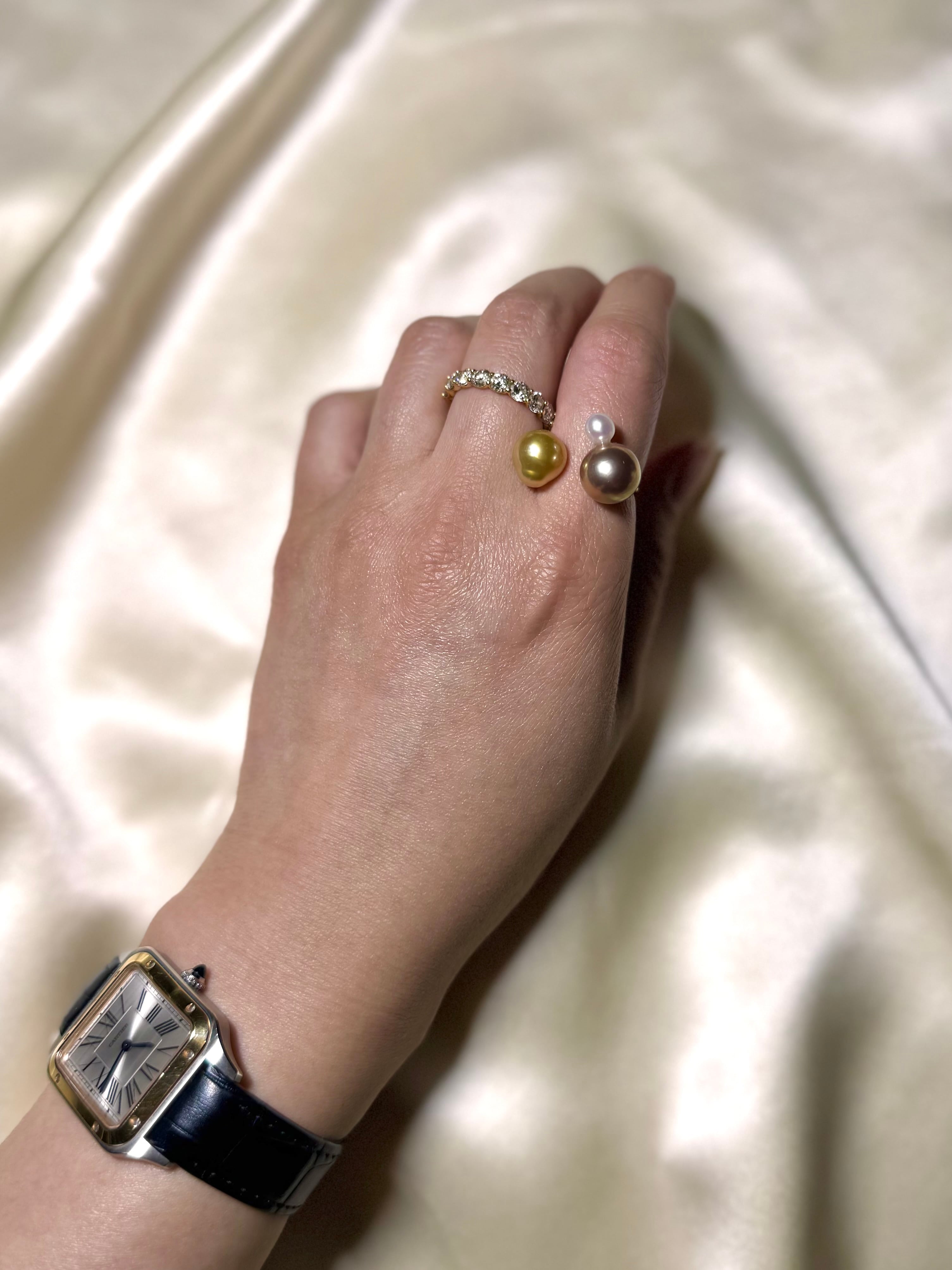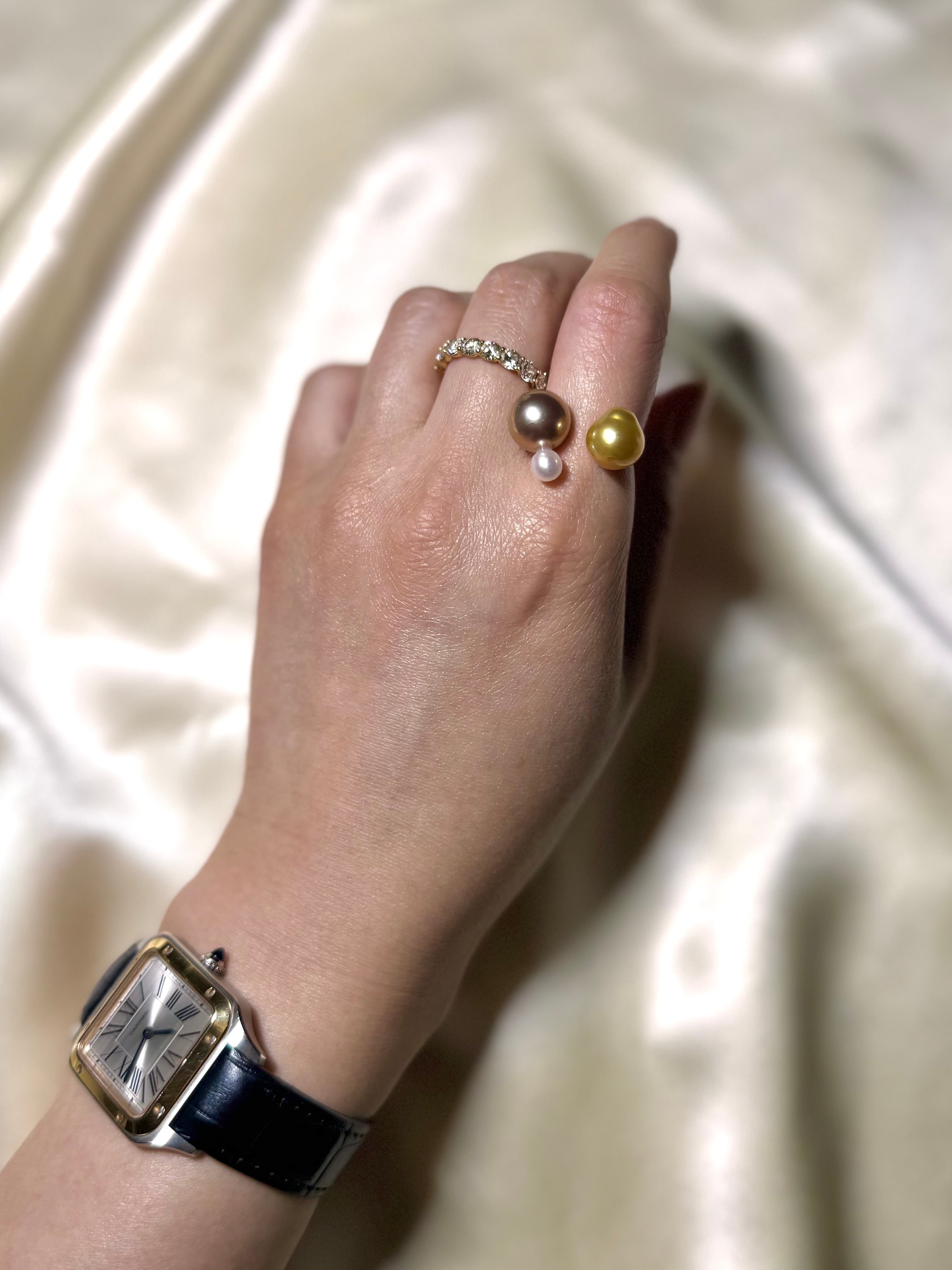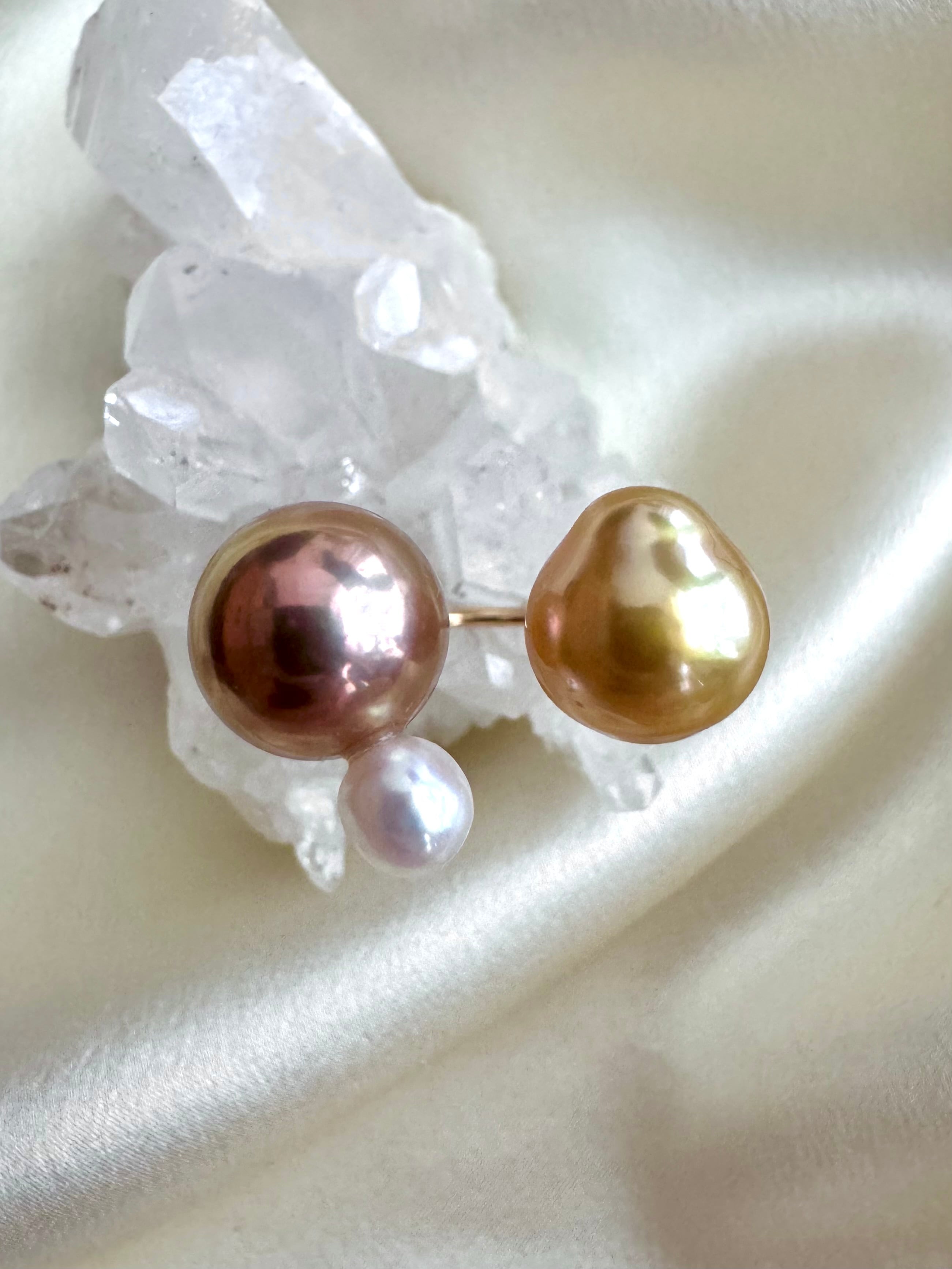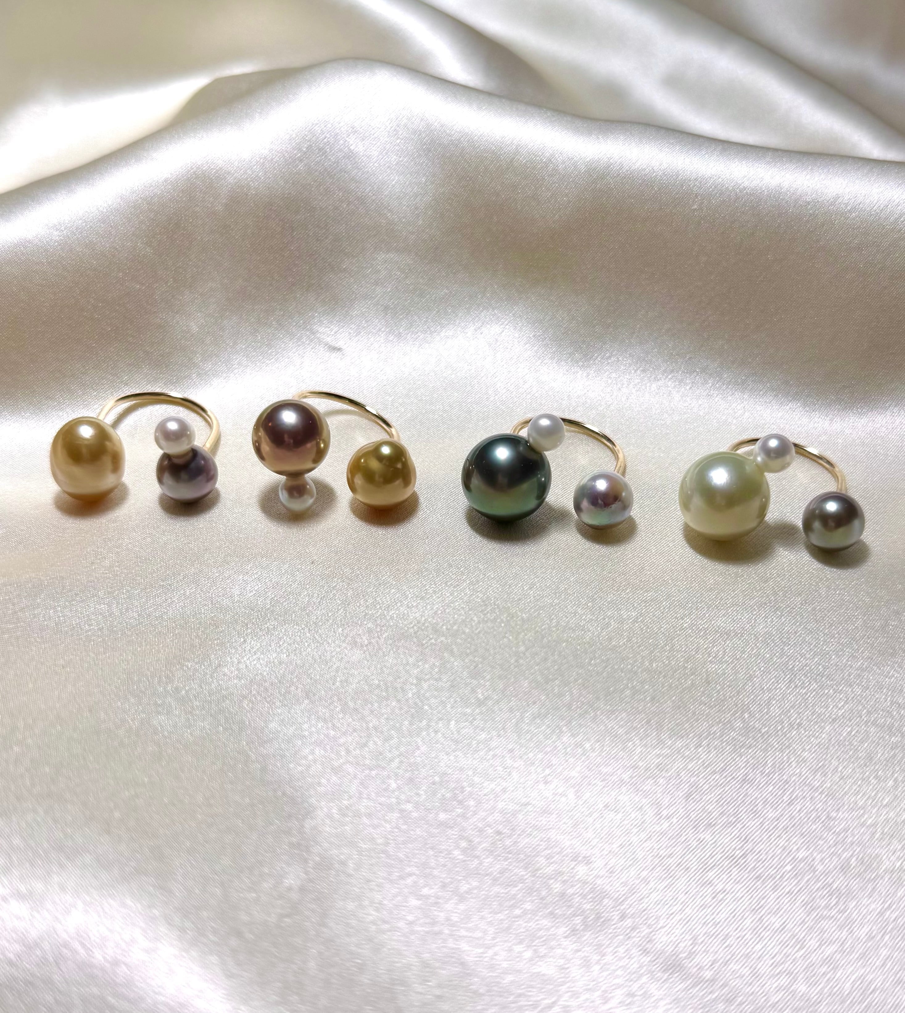 yuma ringよりもパールの組み合わせを柔軟に、色や形、珠種様々にこだわって組み合わせているcombination ringシリーズです。