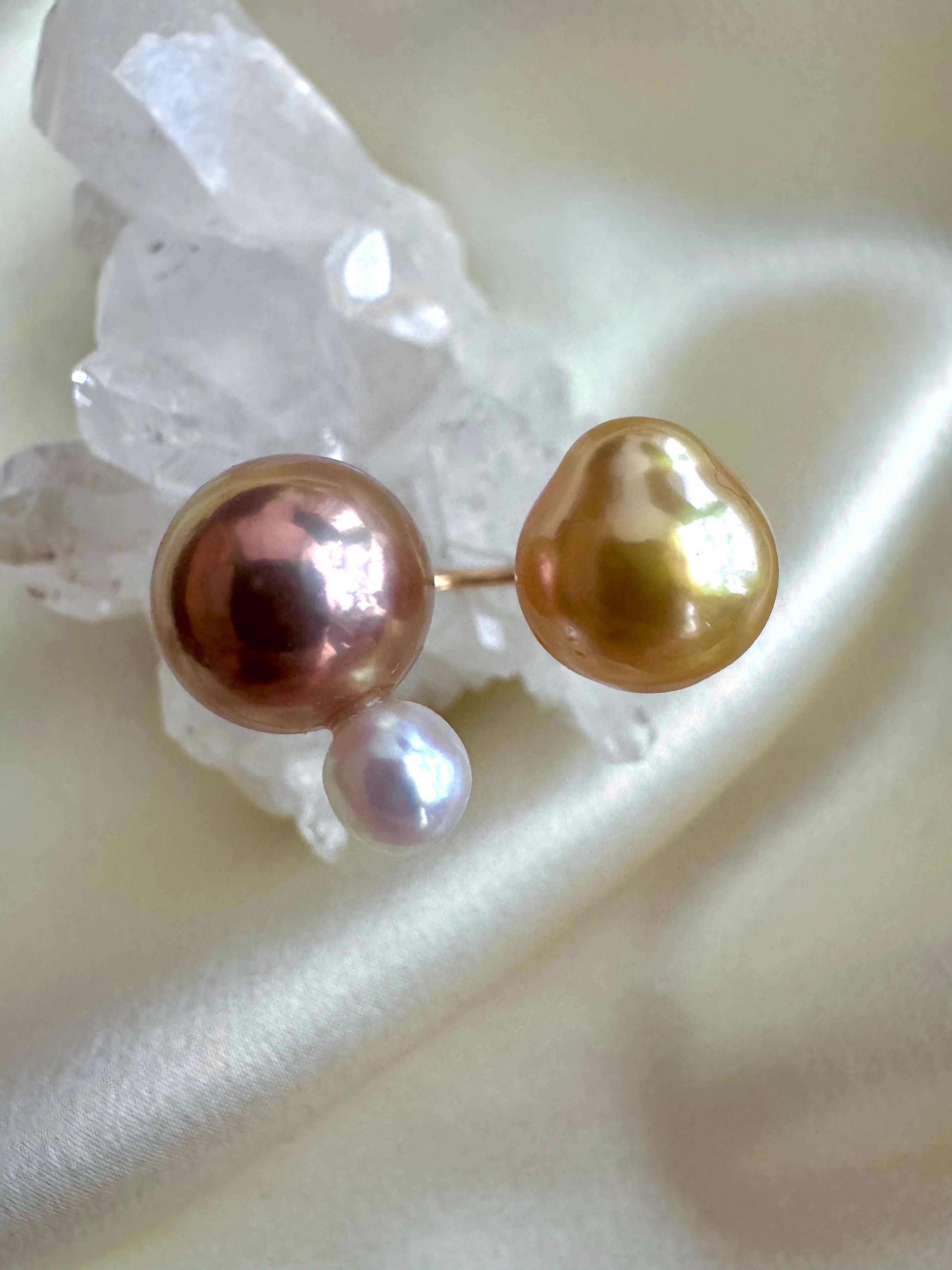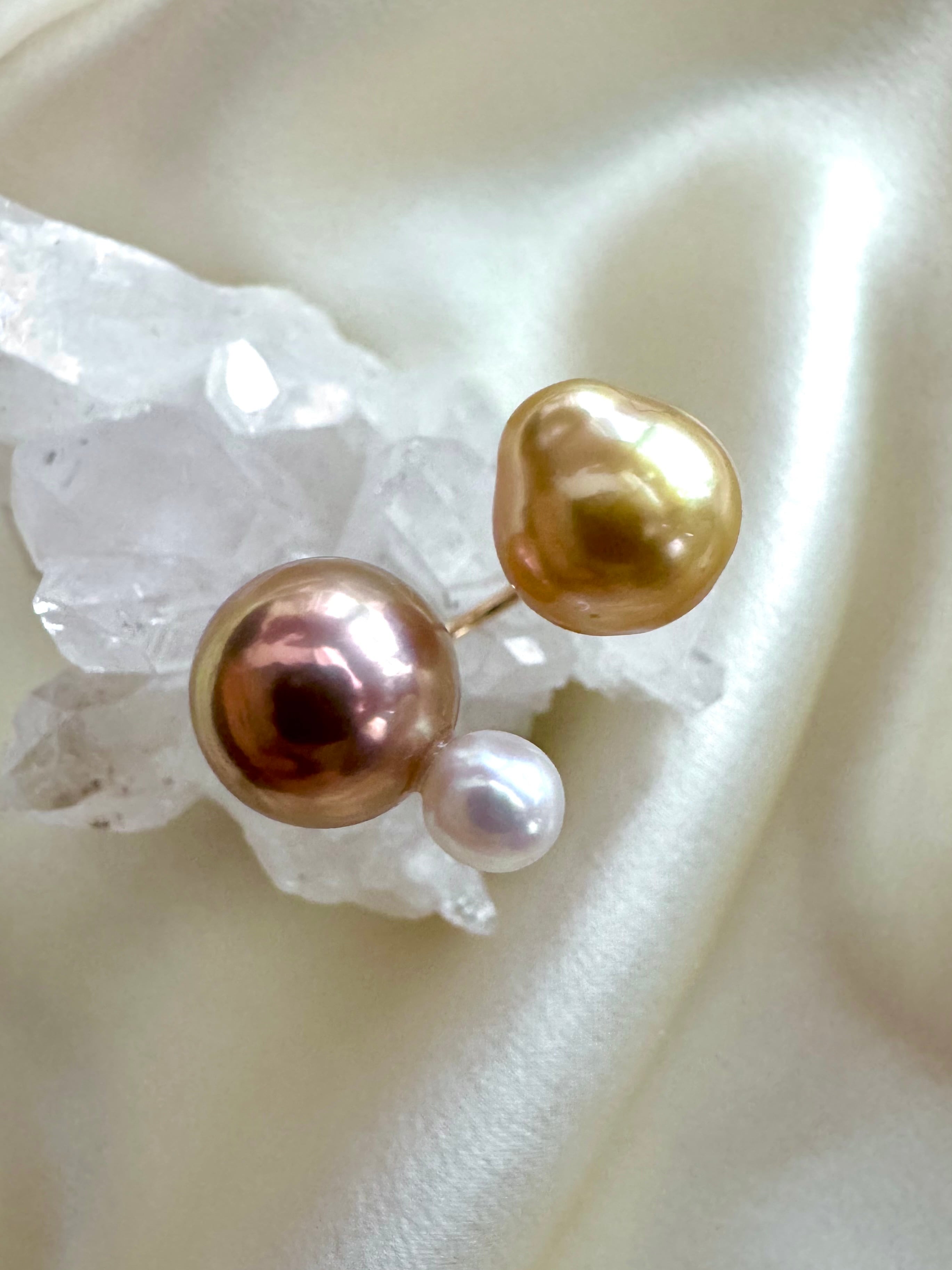 メタルボールのようなブロンズパールに合わせてぎゅっと濃いイエローゴールドの南洋を合わせてみました。バロックの南洋がお気に入り。