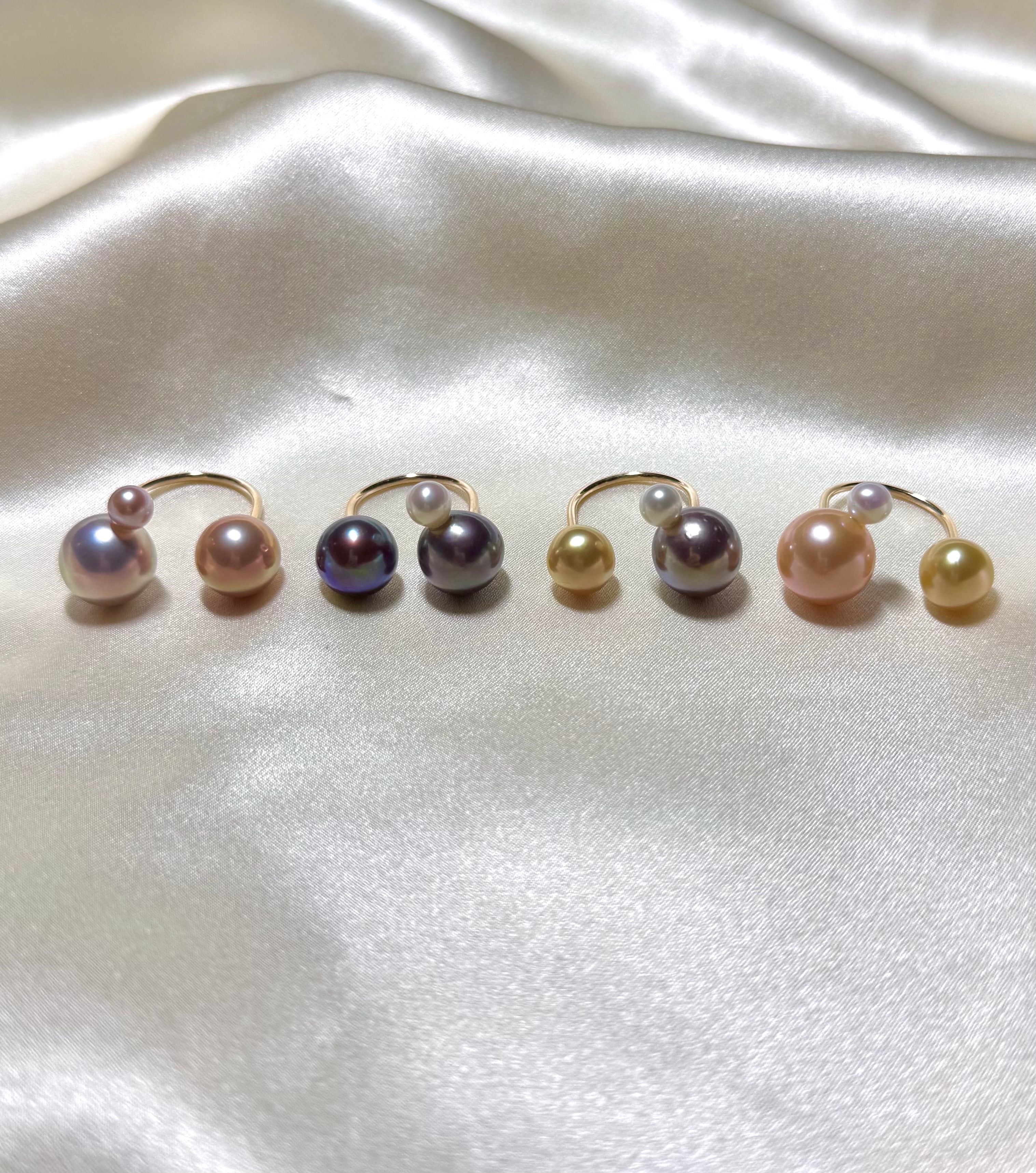 yuma ringよりもパールの組み合わせを柔軟に、色や形、珠種様々にこだわって組み合わせているcombination ringシリーズです。