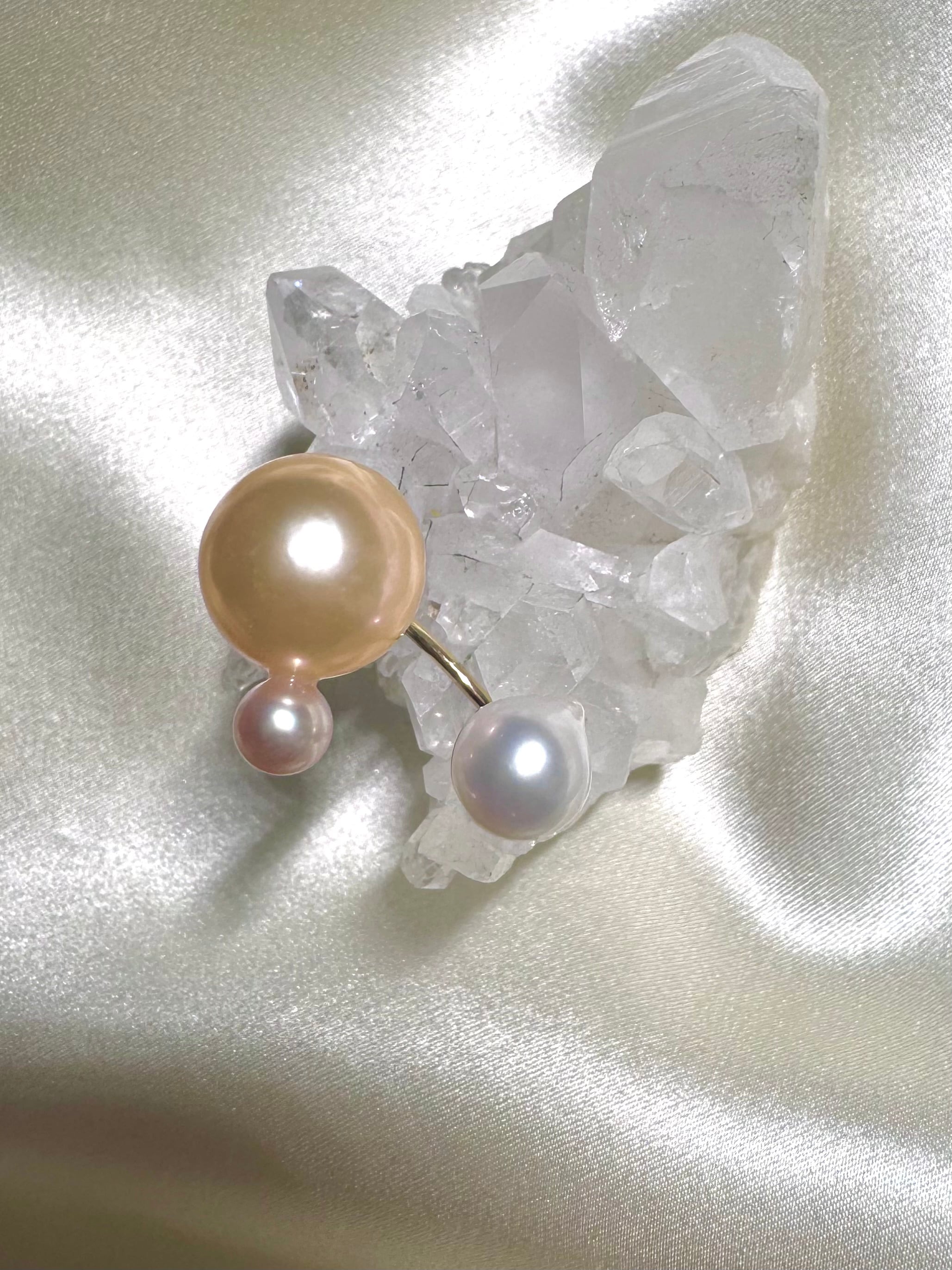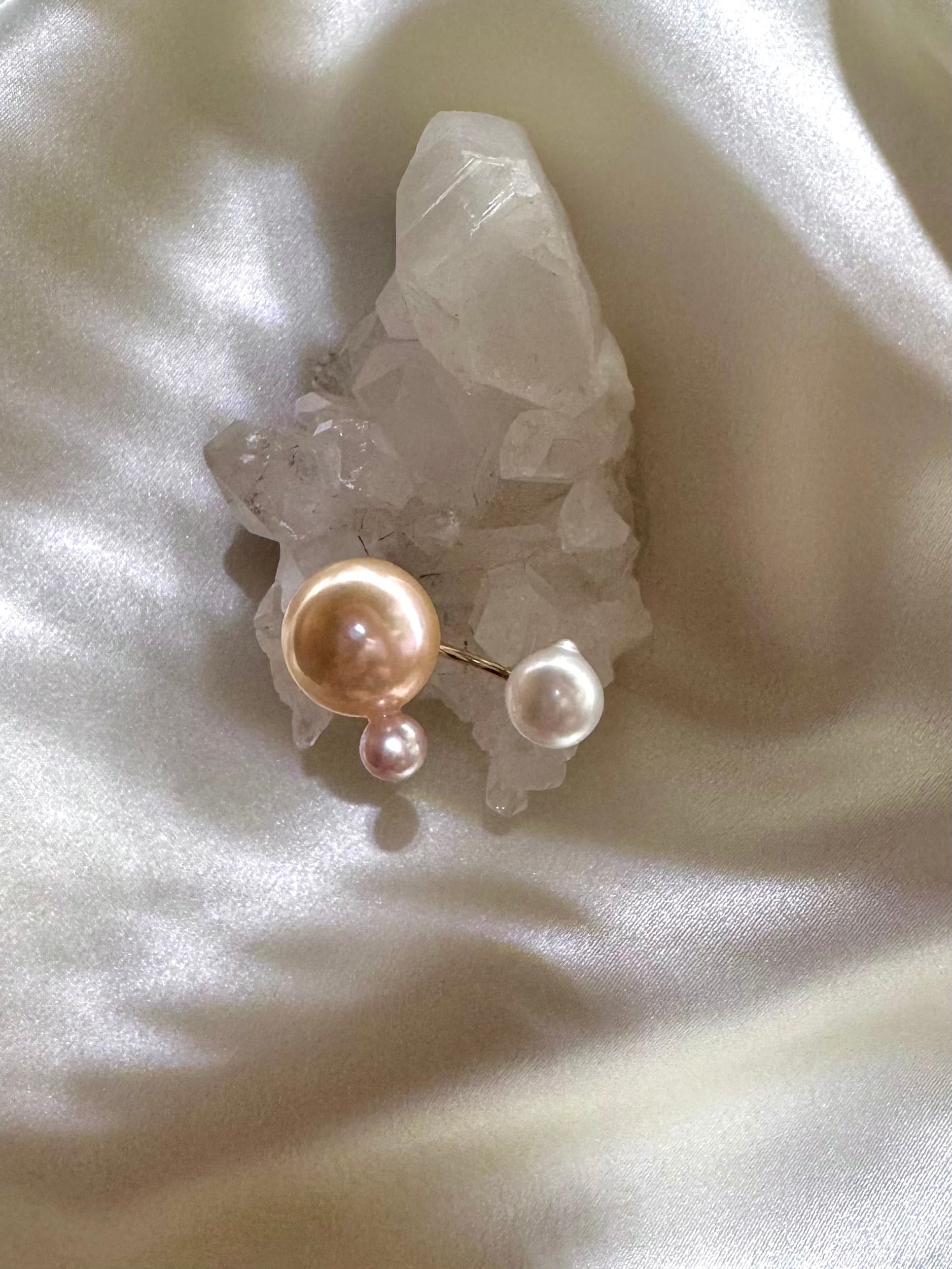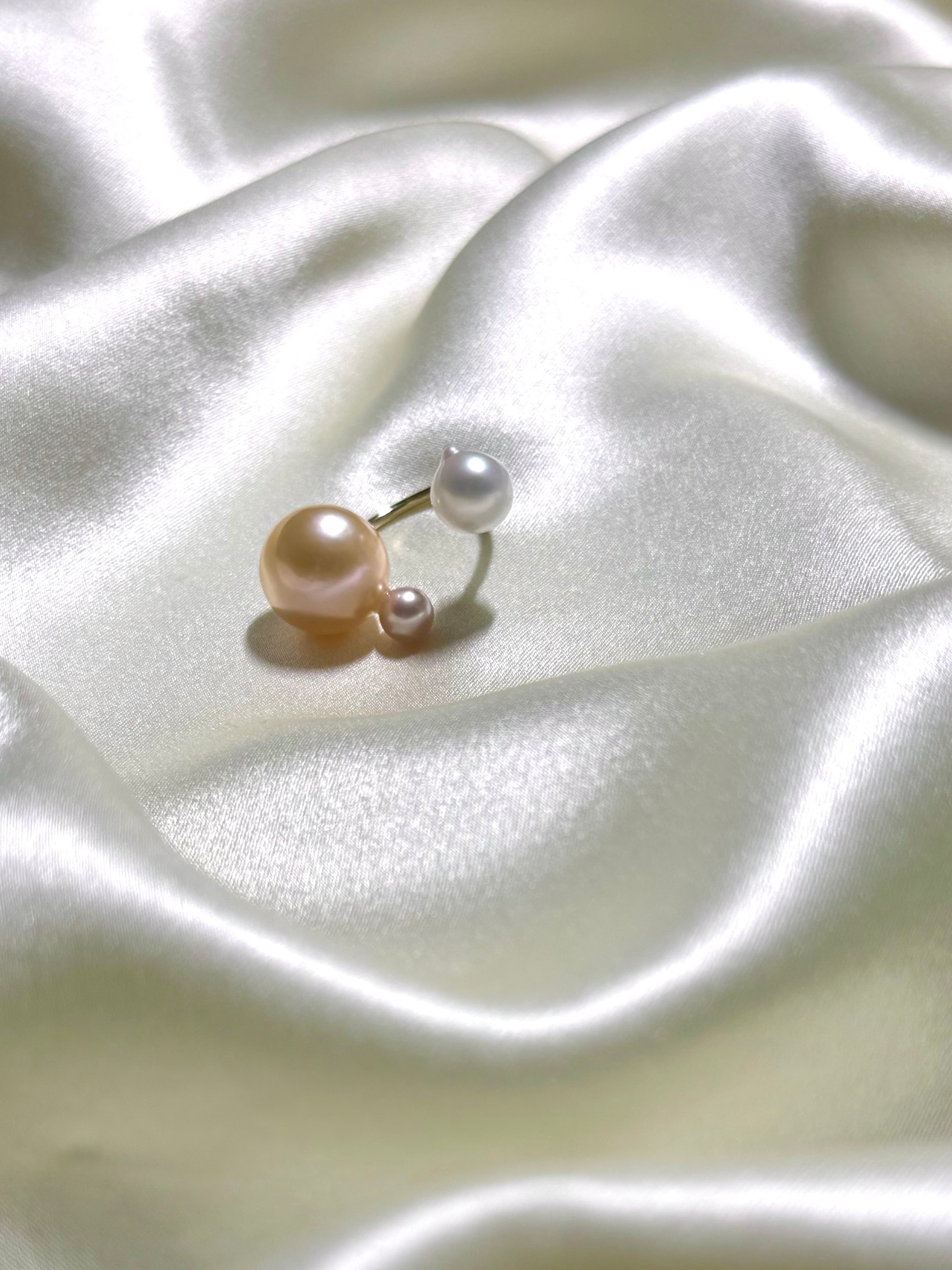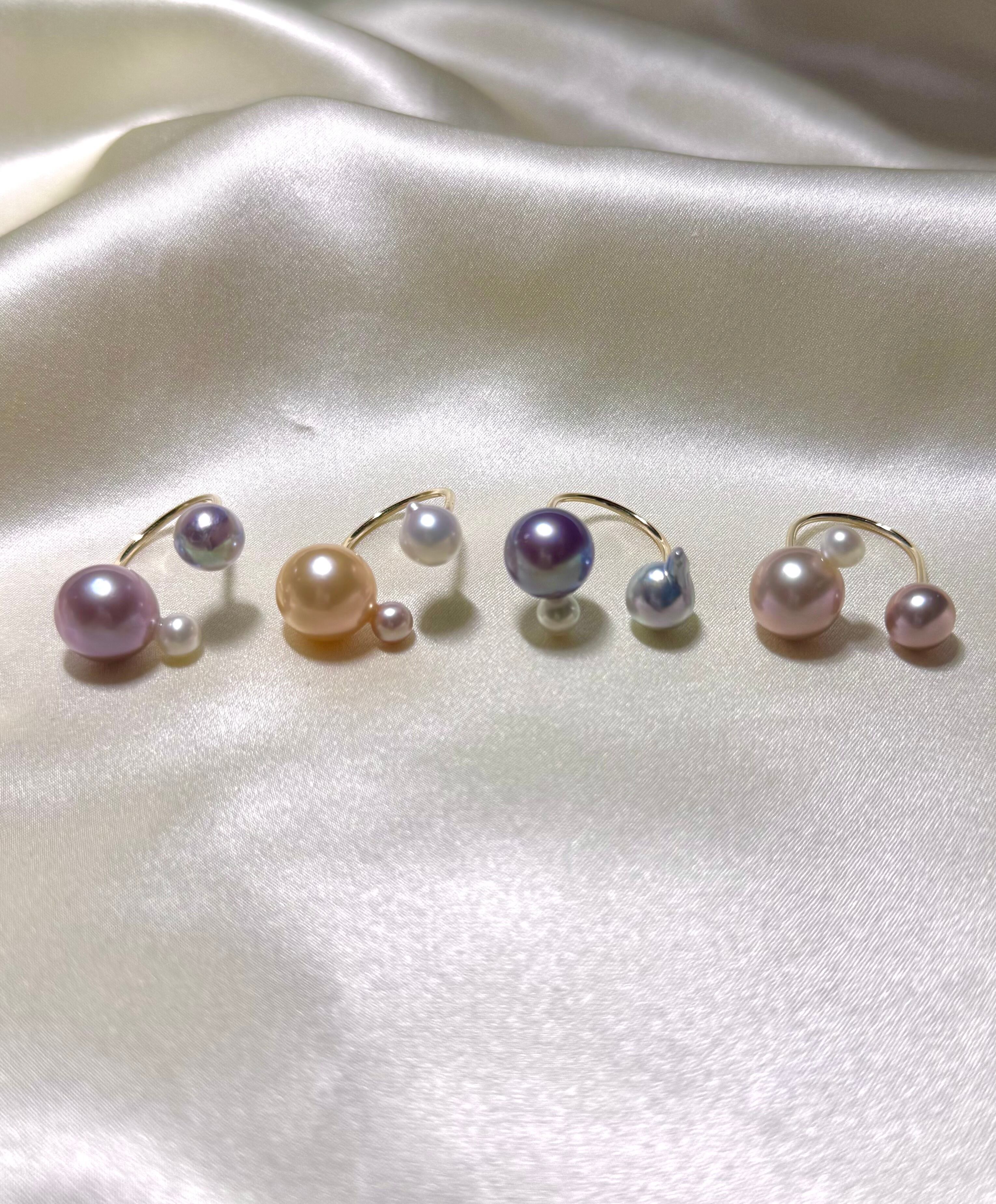yuma ringよりもパールの組み合わせを柔軟に、色や形、珠種様々にこだわって組み合わせているcombination ringシリーズです。
