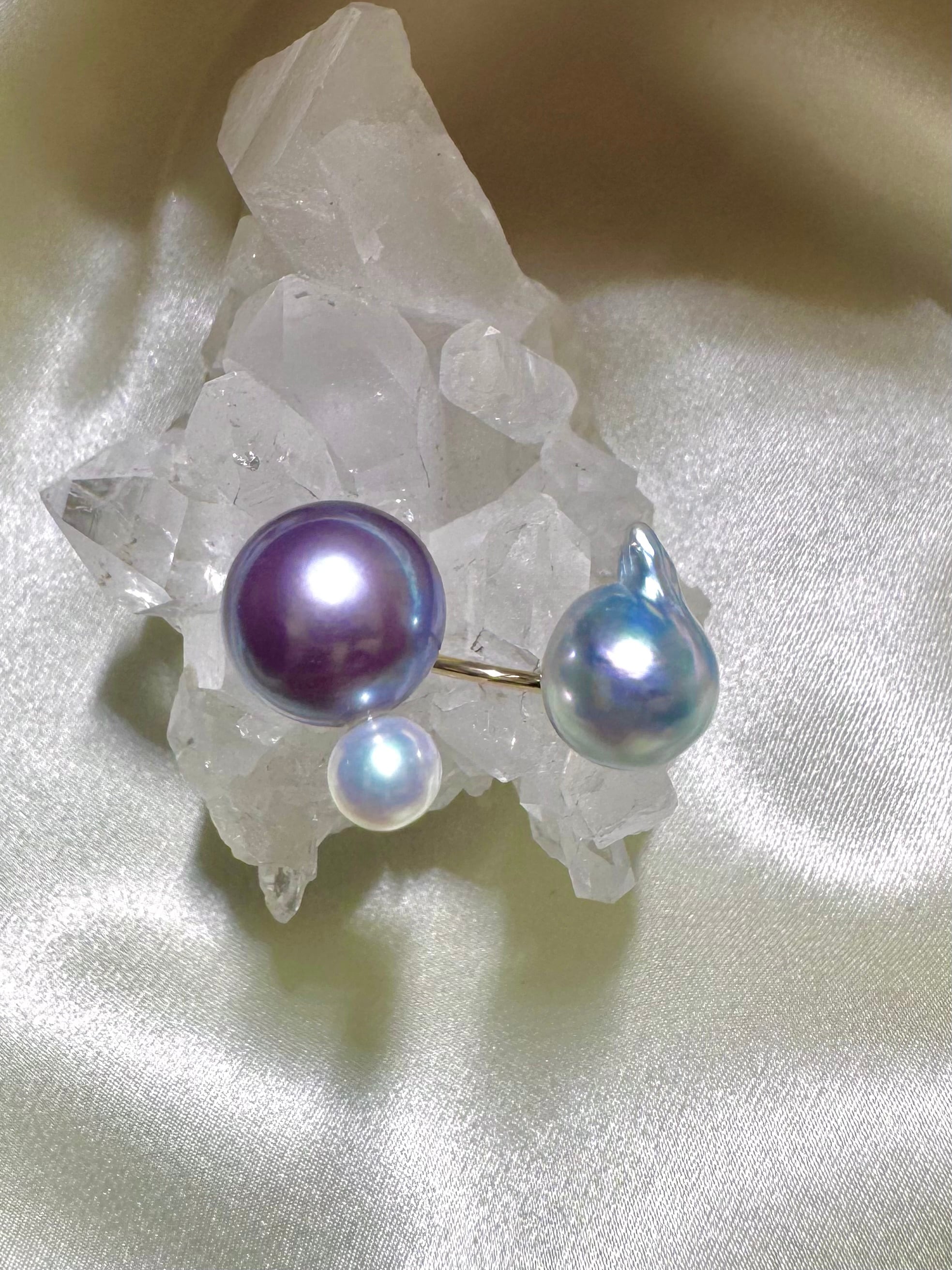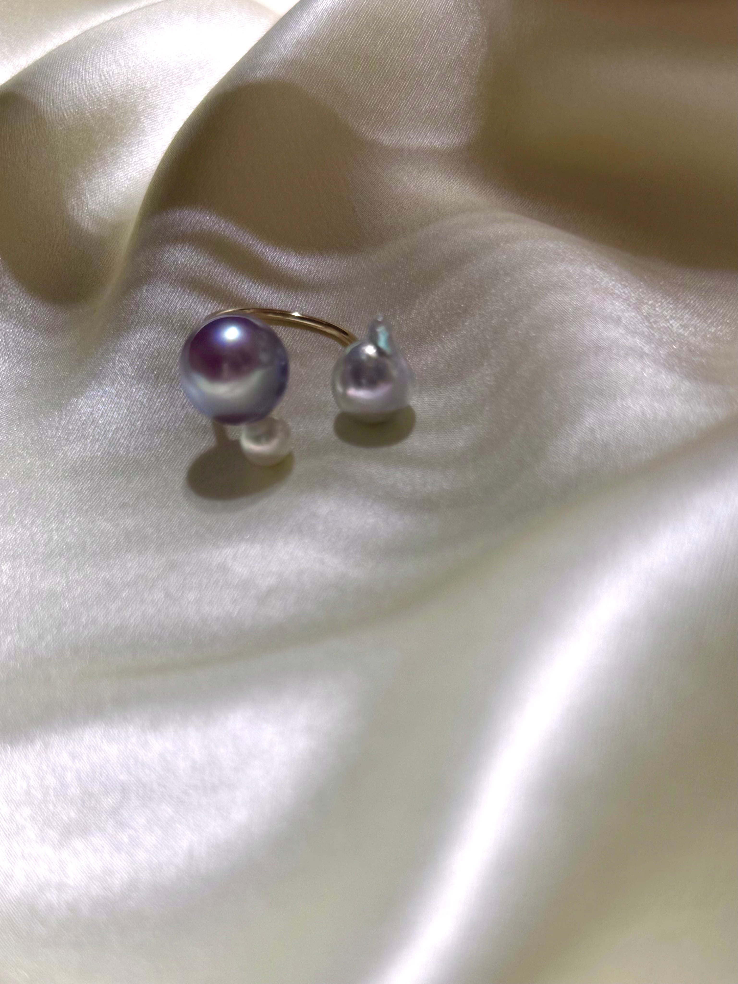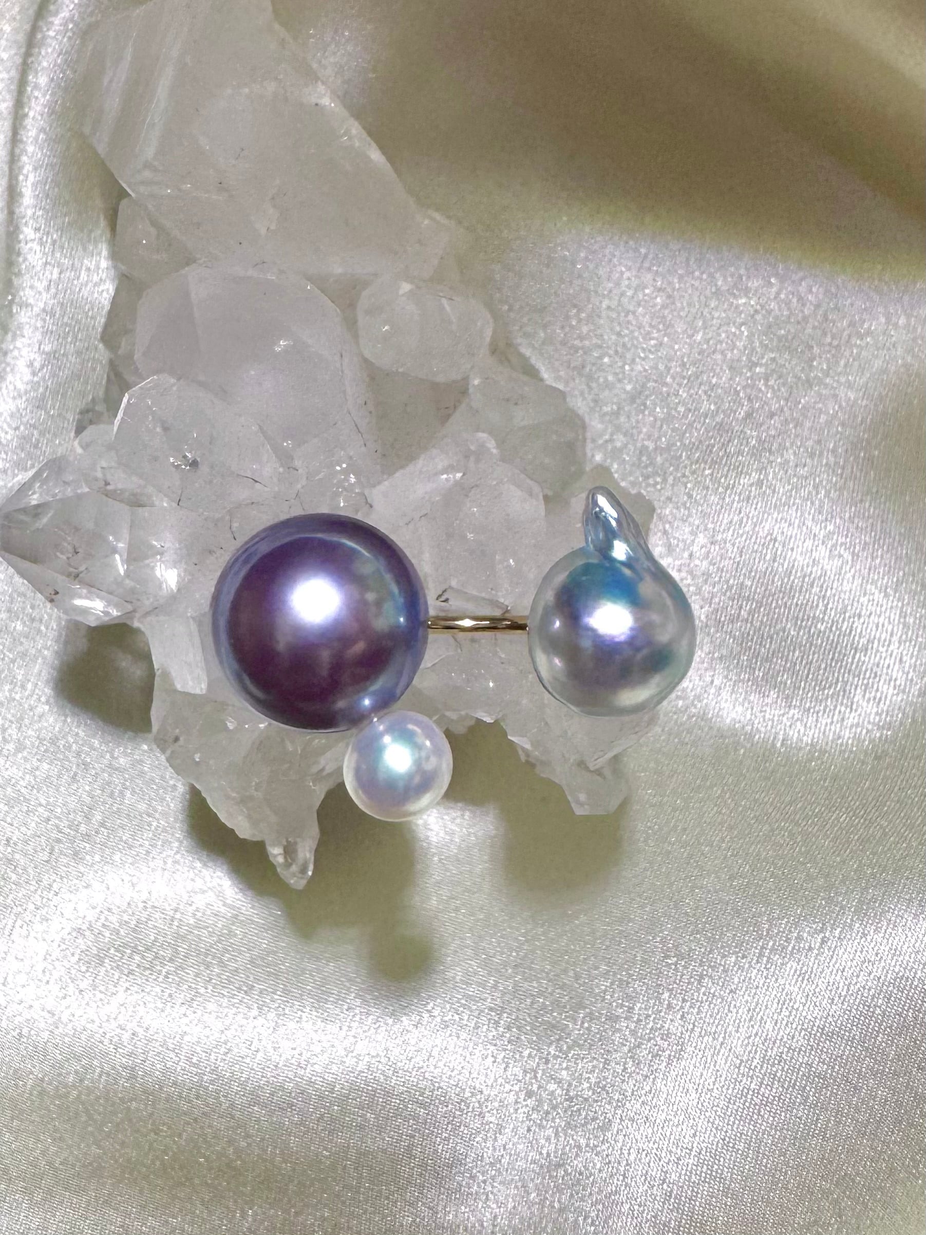 yuma ringよりもパールの組み合わせを柔軟に、色や形、珠種様々にこだわって組み合わせているcombination ringシリーズです。