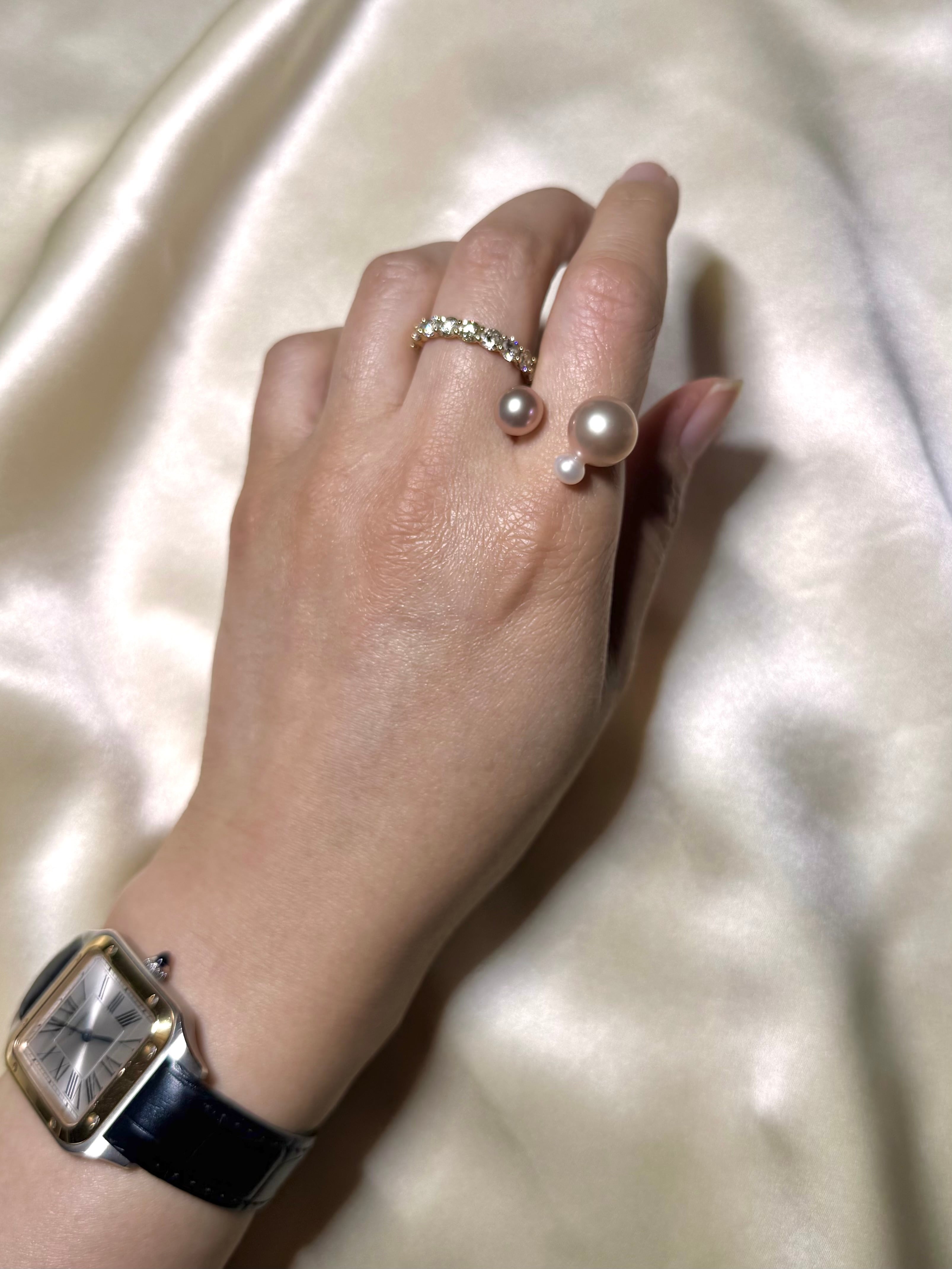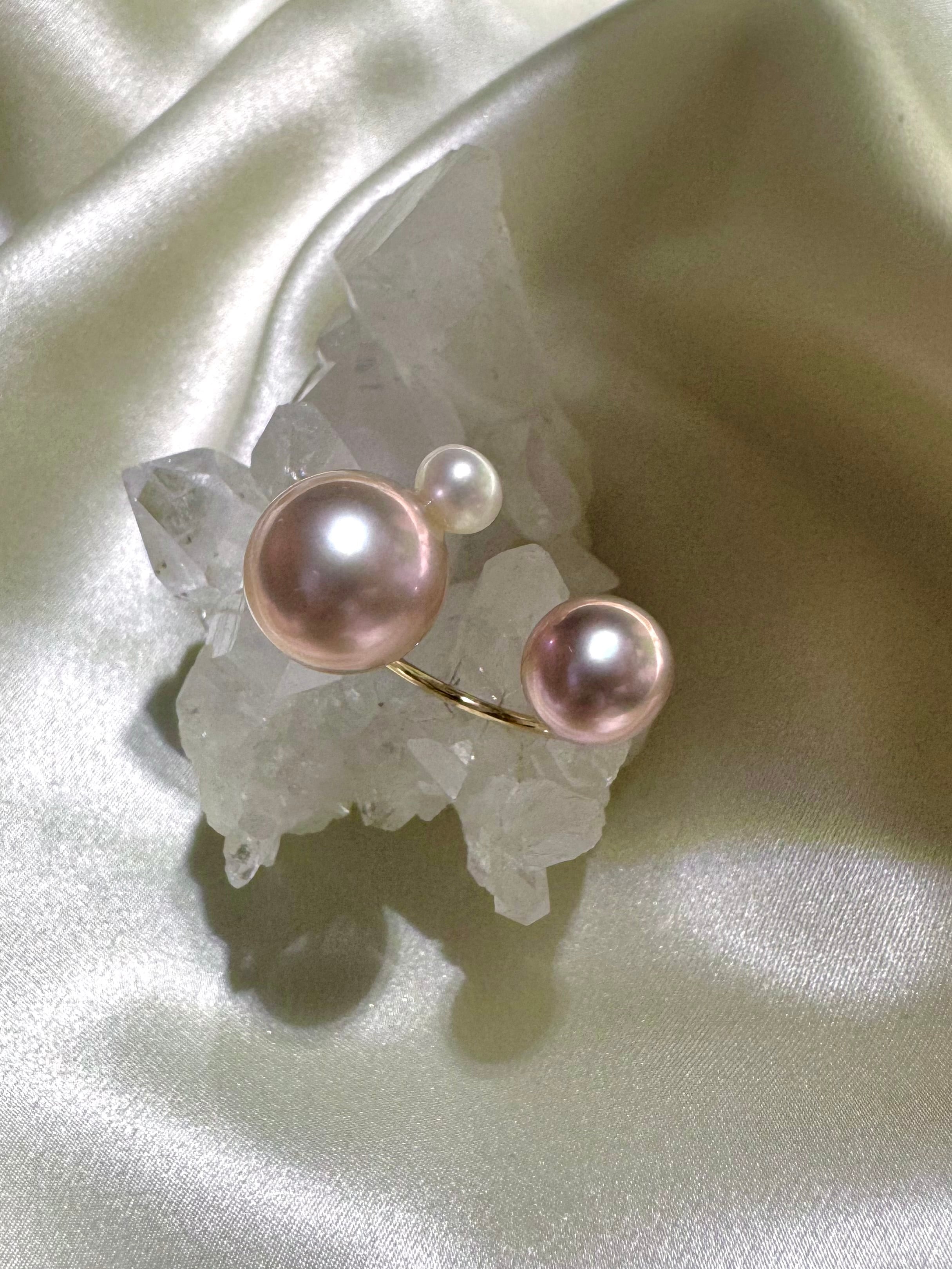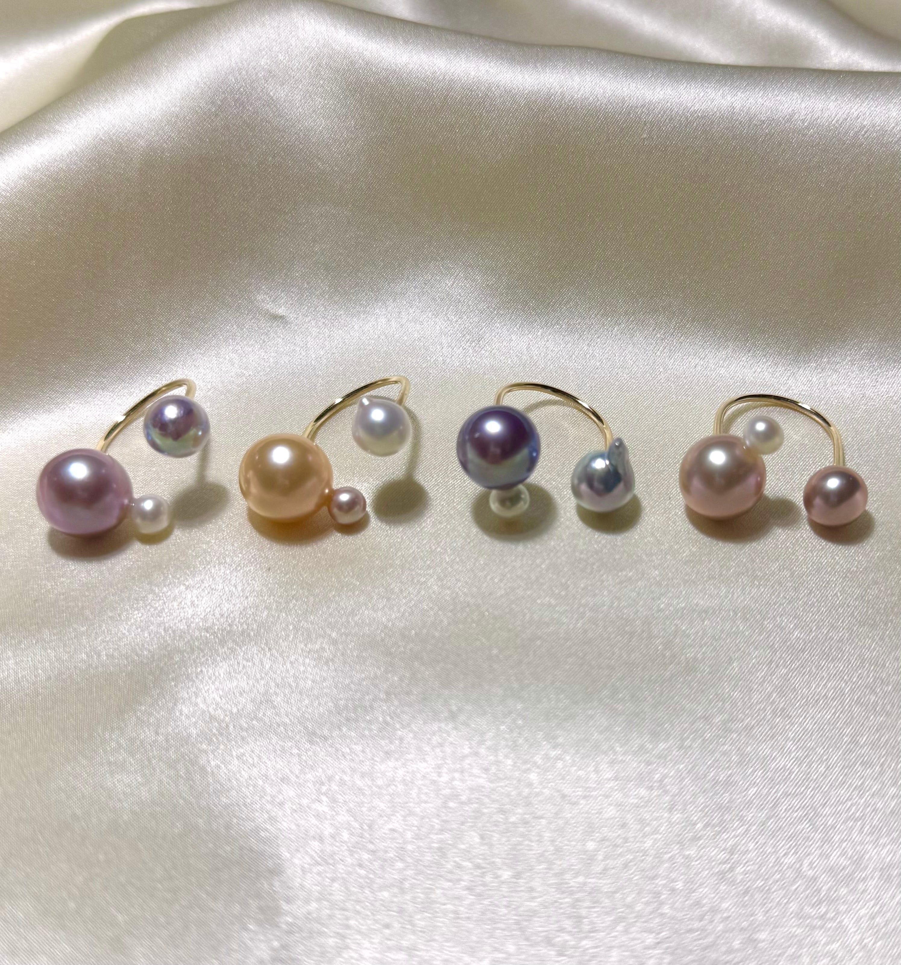 yuma ringよりもパールの組み合わせを柔軟に、色や形、珠種様々にこだわって組み合わせているcombination ringシリーズです。