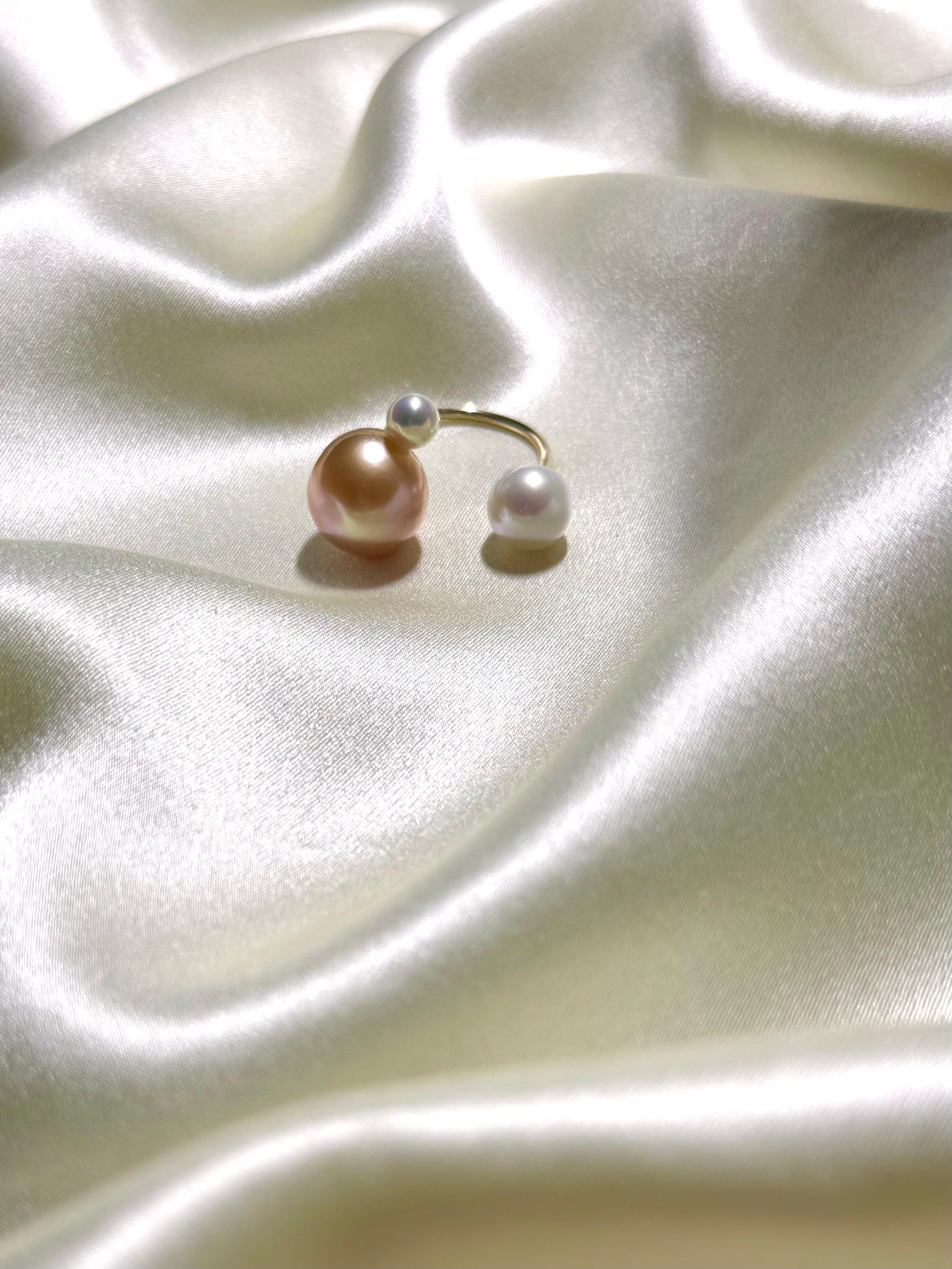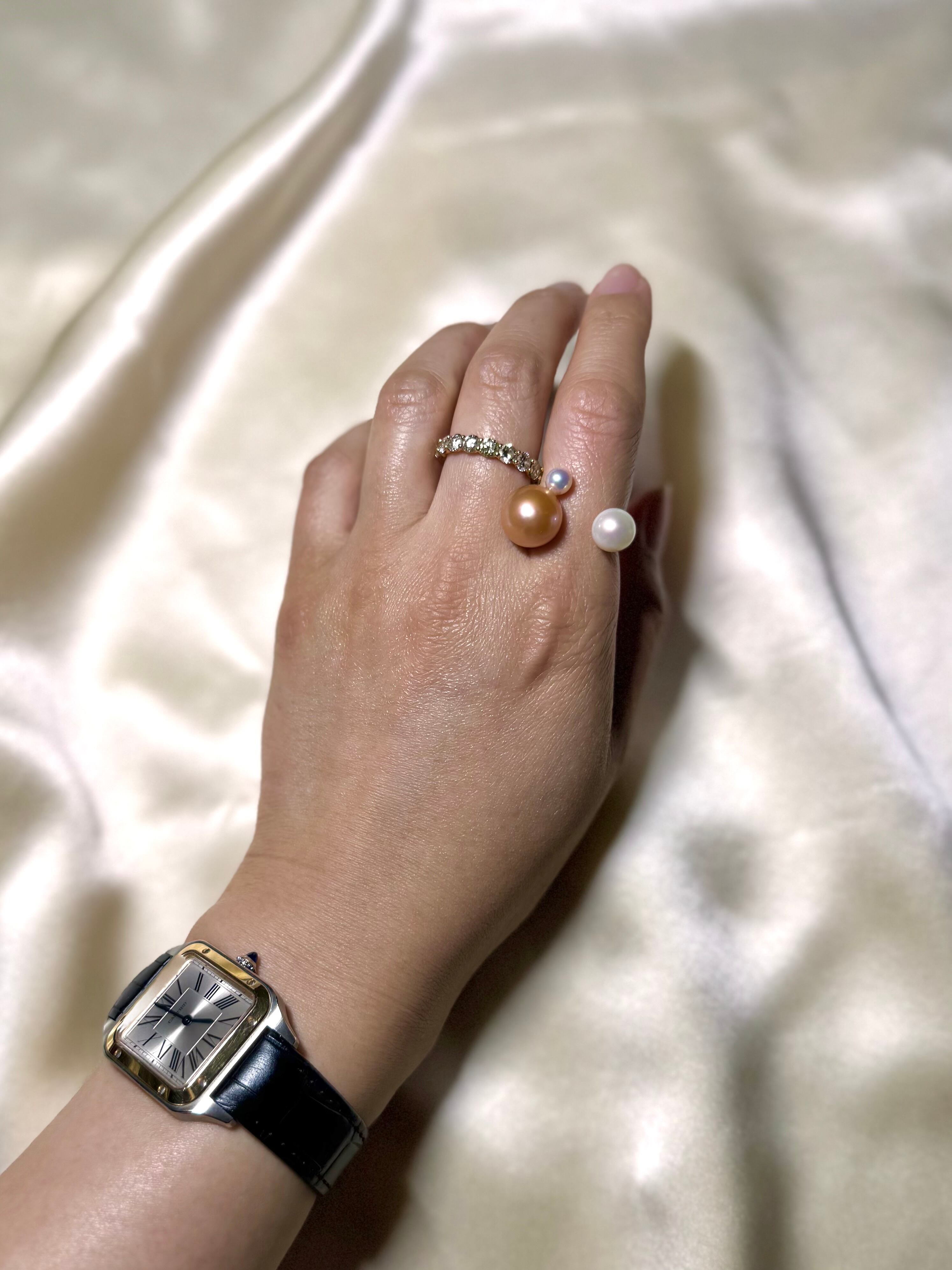 yuma ringよりもパールの組み合わせを柔軟に、色や形、珠種様々にこだわって組み合わせているcombination ringシリーズです。