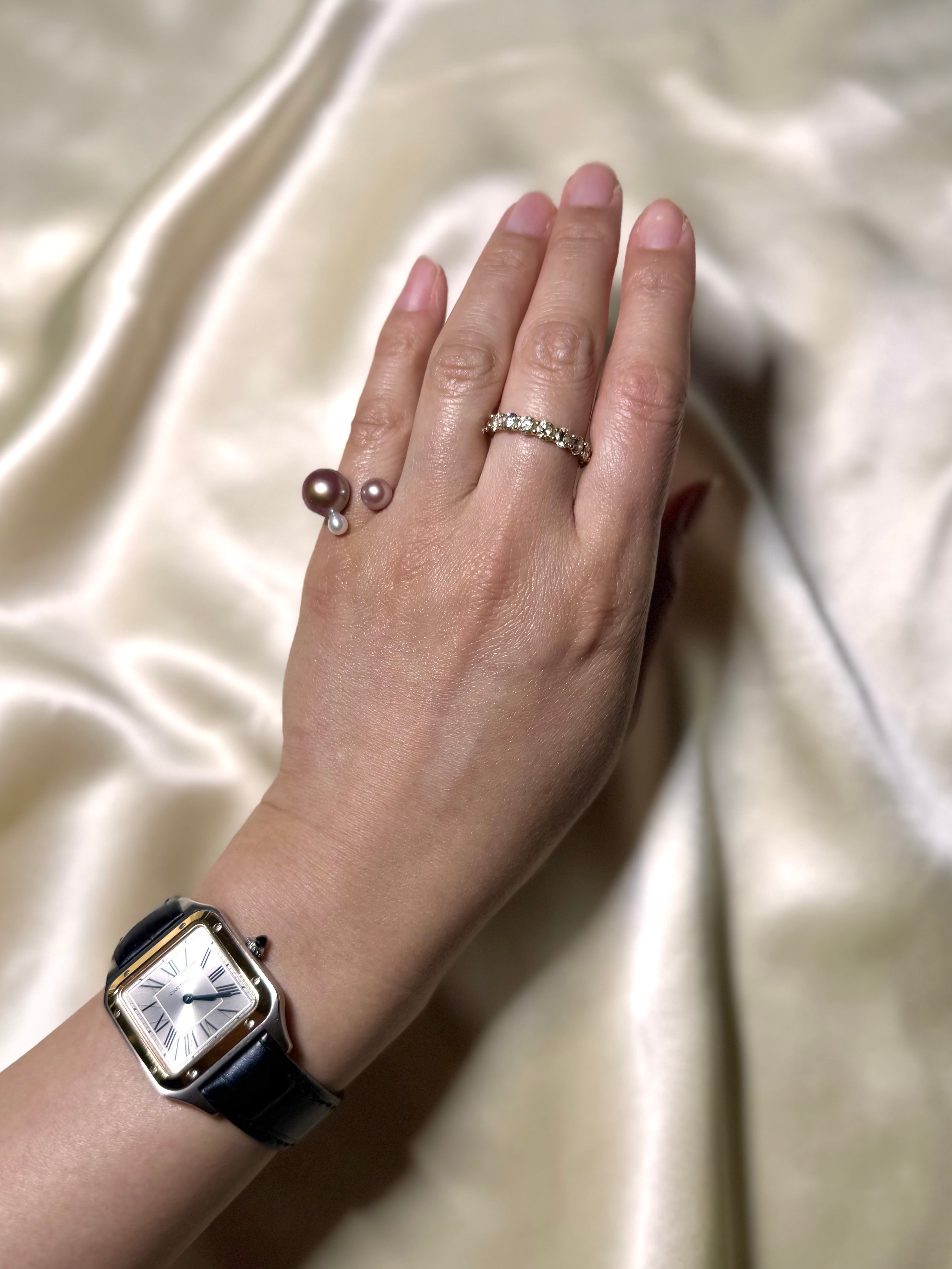 パールの質はそのままに、キッズの指におさまるミニマムなサイズ感が大人の小指にジャストフィット。
