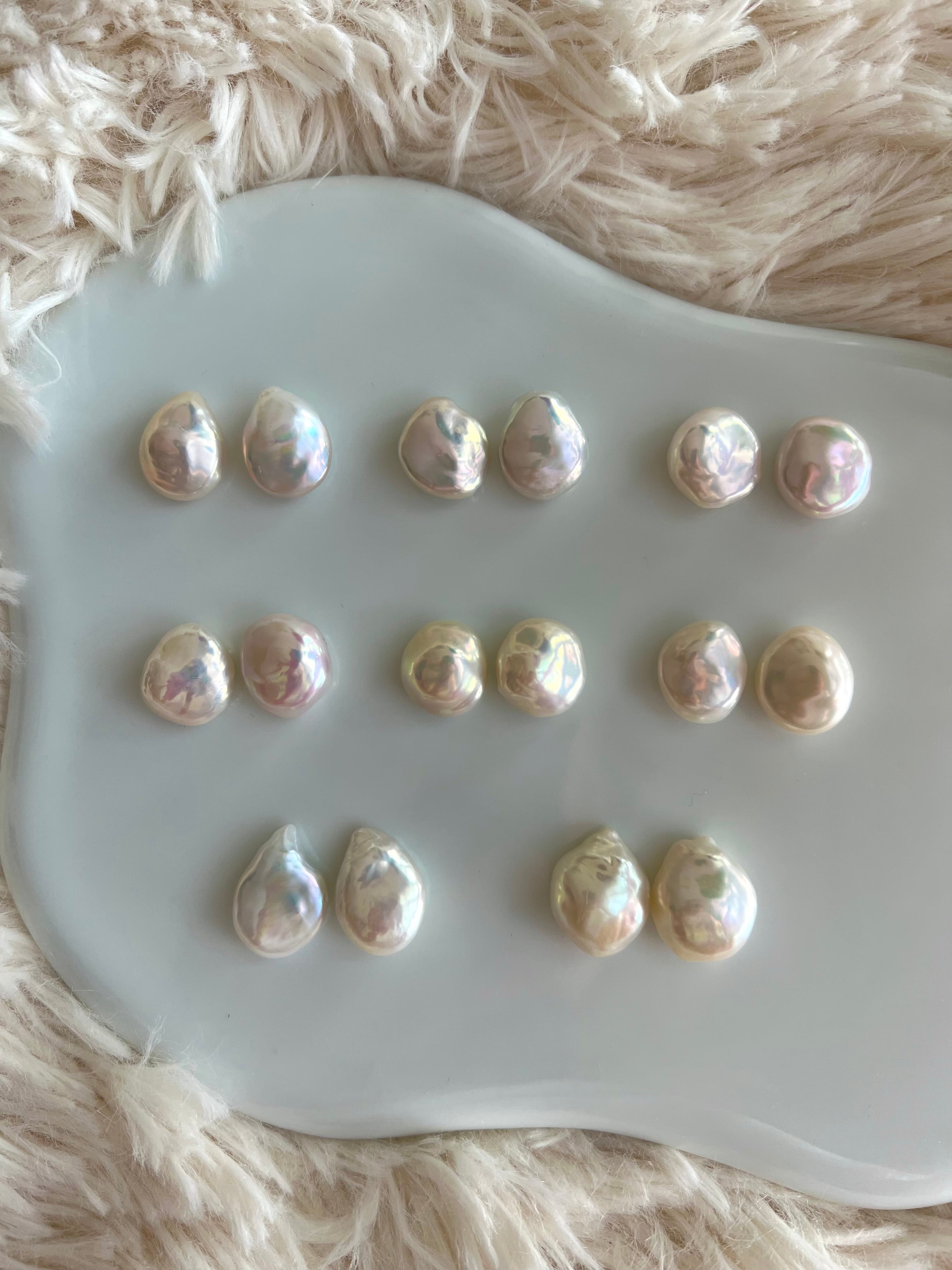 干渉色もしっかり入った照り艶々パール。ラウンドとは違ういびつさが愛おしいです。