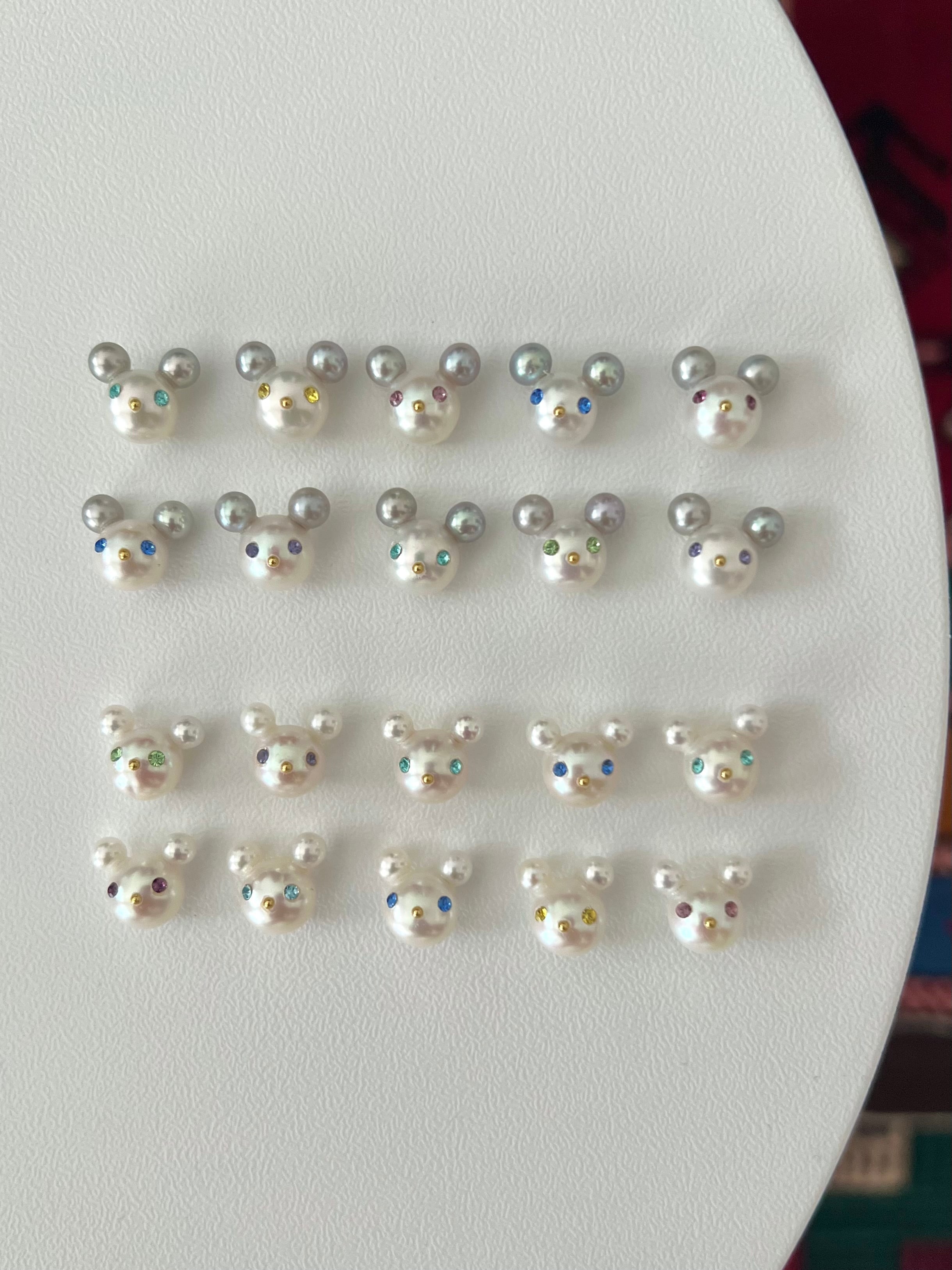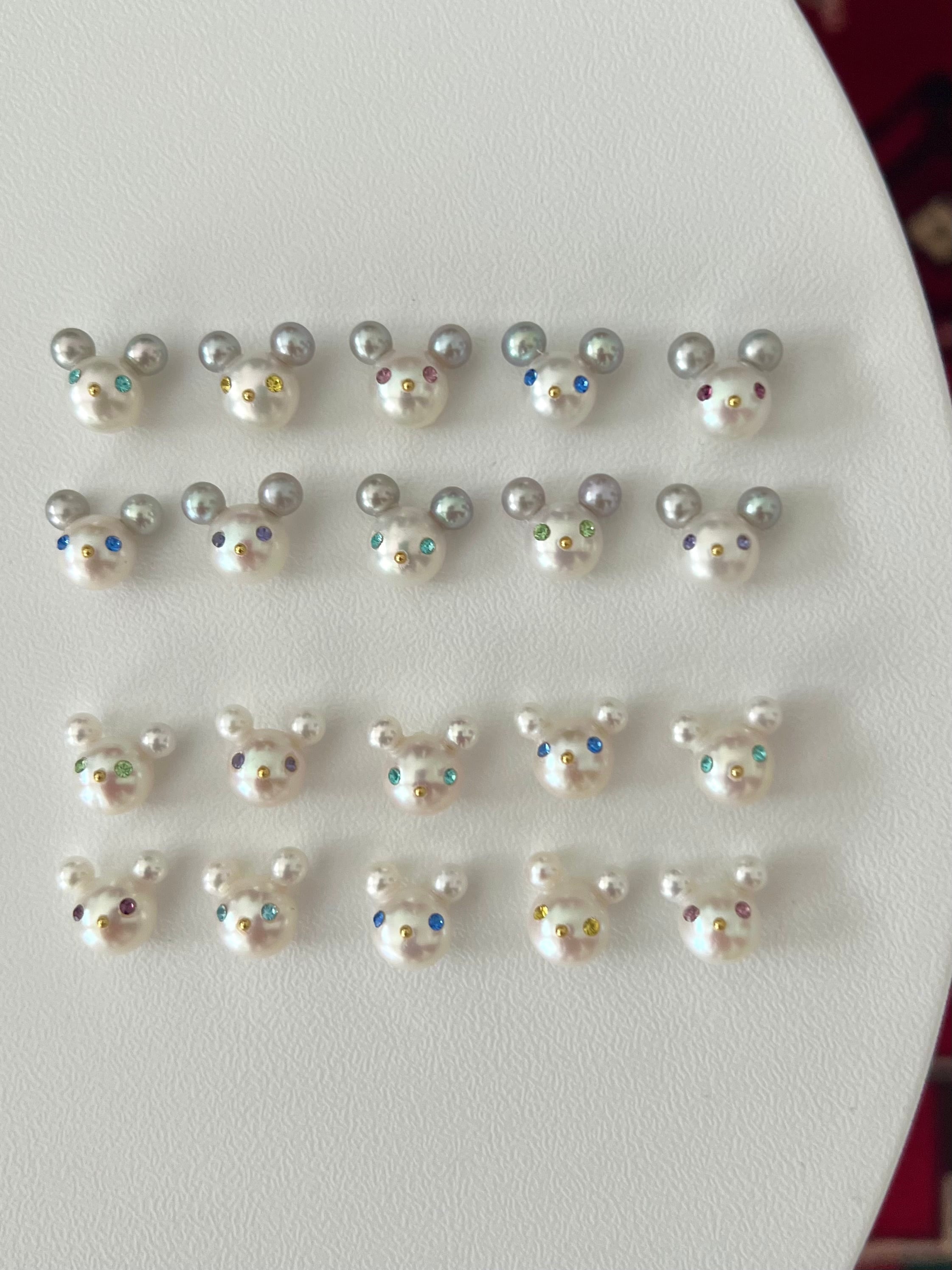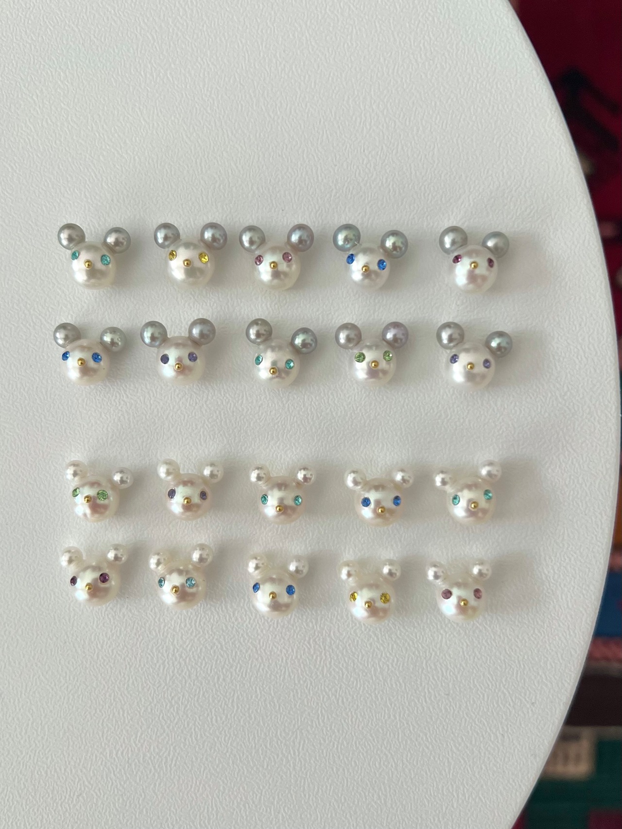 くまのような、ねずみのような、うさぎのような、わんちゃんのような、パンダのような。。艶々のパールでつくるちょっとおぶすで愛嬌のあるフェイスが愛おしいアニマルたち。